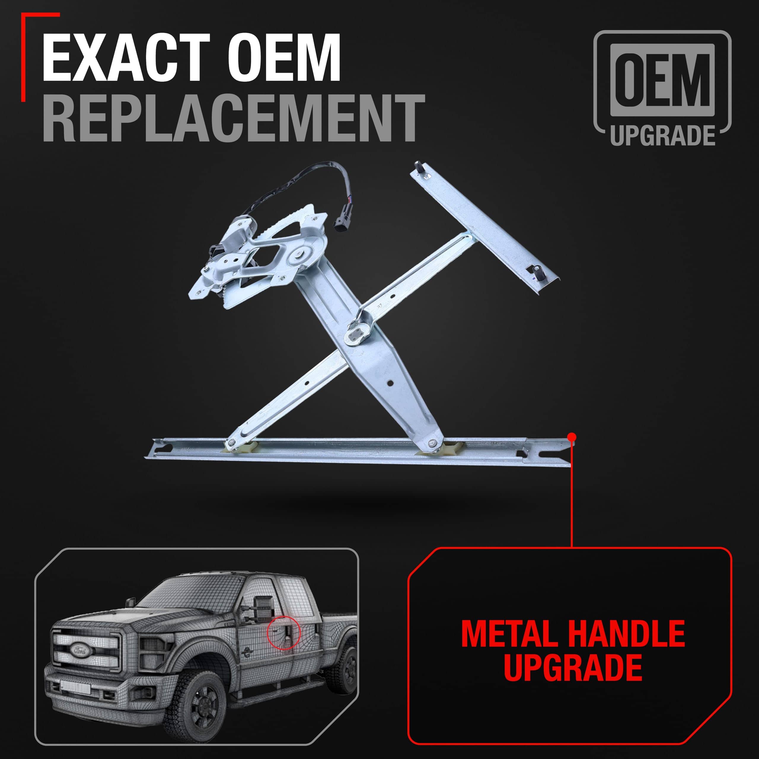 Actualización Premium del Regulador de Ventana para Modelos Ford F250 F350 F450 F550 F650 F750 & Excursion – Reemplaza 111A93; 11R81; 660262, etc. Regulador de ventana frontal izquierdo con ensamblaje de motor. Esta ventana no es solo un reemplazo; es una mejora para su camioneta, combinando durabilidad, estilo y compatibilidad perfecta.