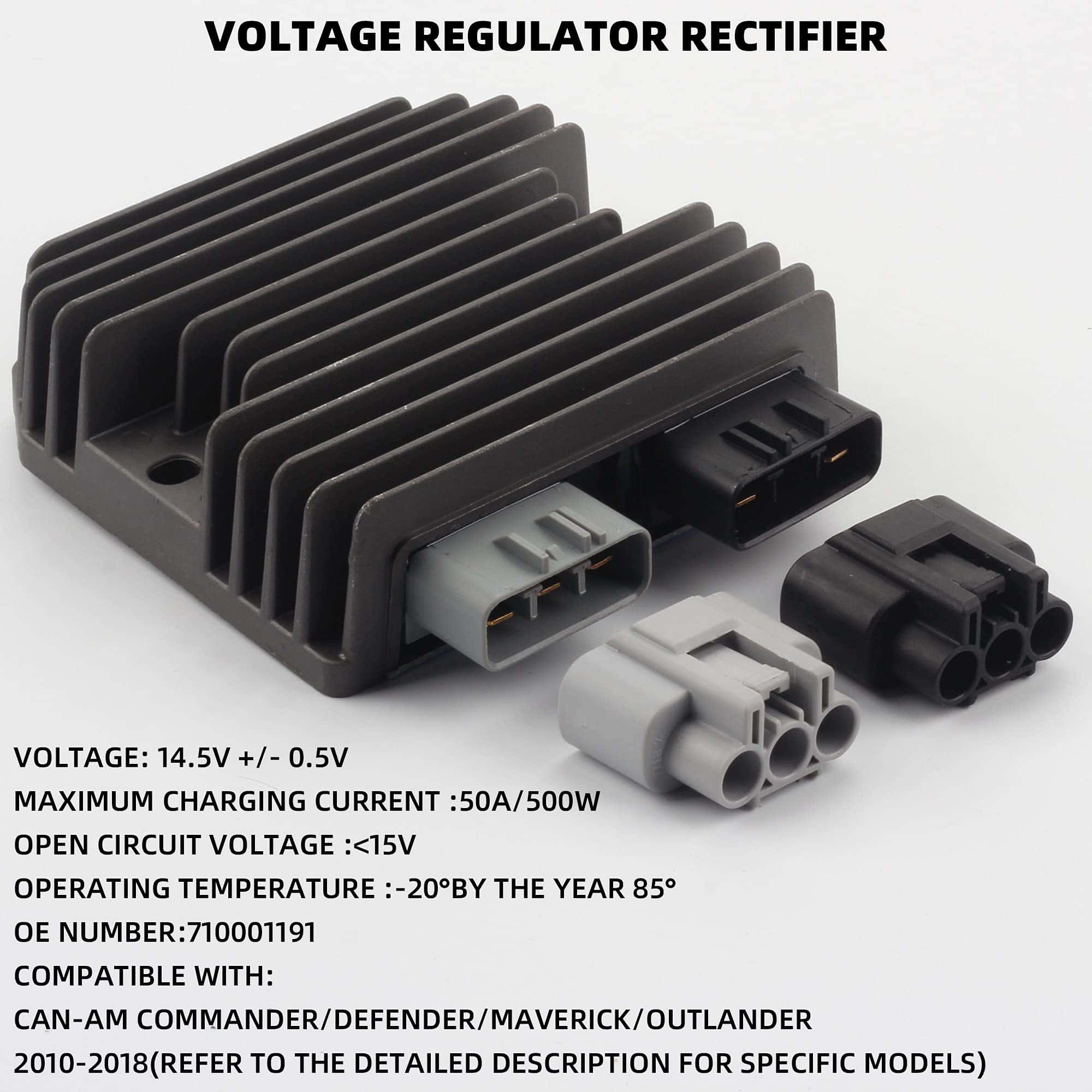 Compatibilidad: El regulador de voltaje se adapta a Can am Commander / Defender / Maverick / Outlander 2010 – 2018. Asegúrese de verificar el título o la descripción del producto antes de ofertar para garantizar que la pieza sea adecuada para su motocicleta. Regulador de voltaje Reemplaza 710001191.