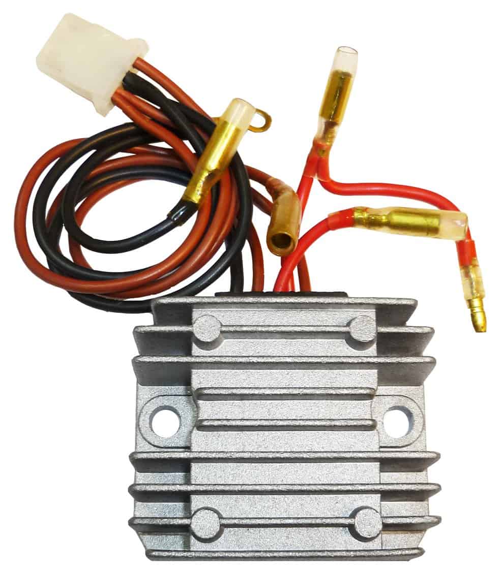 Un regulador de voltaje que reemplaza a el reg/rec OEM. Reemplazo directo OEM, no se requiere adaptación o ensamblaje de conectores. La tabla de compatibilidad es solo de referencia. Número de parte OEM: 21066-3711 SH522F-12 Compatible con: Kawasaki (98-99) JH750 Jet Ski Sport XI (94-95) JT750 A (93-97) JH750 Jet Ski Super Sport XI (95-97) JH750 Jet Ski STS (98-98) JT750 Jet Ski STX (94-94) JH750 Jet Ski XIR (92-97) JH750 Jet Ski SS Shindengen Por favor, verifique con el número de parte y el tamaño del conector para confirmar la compatibilidad.