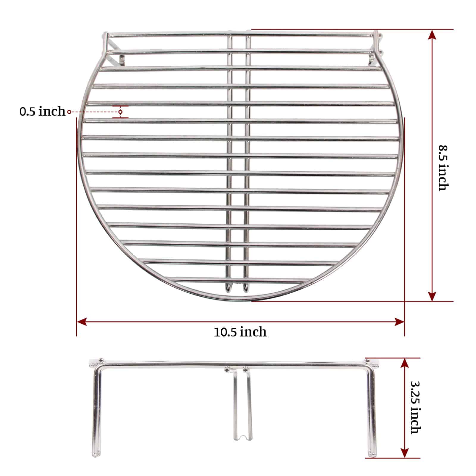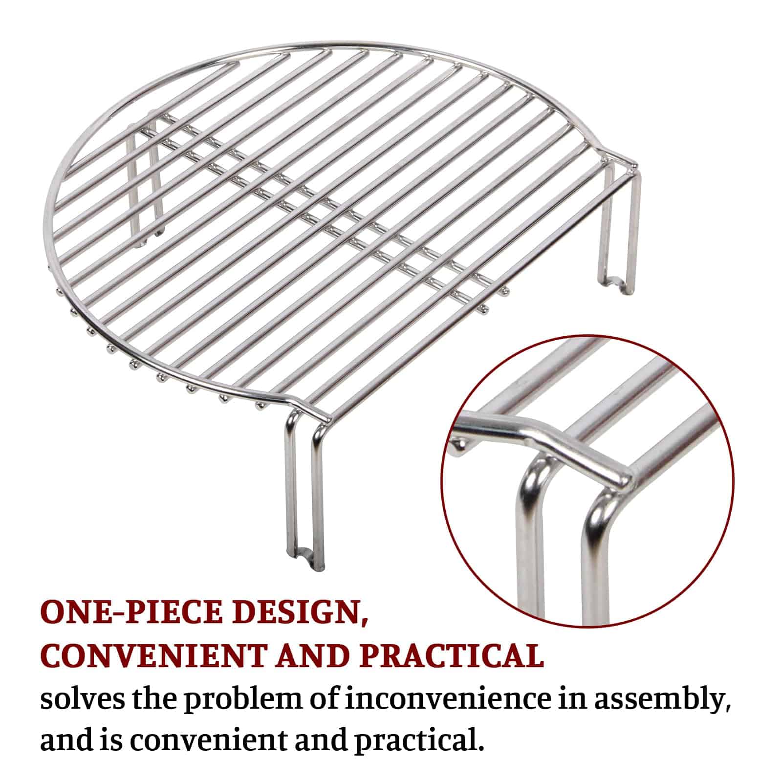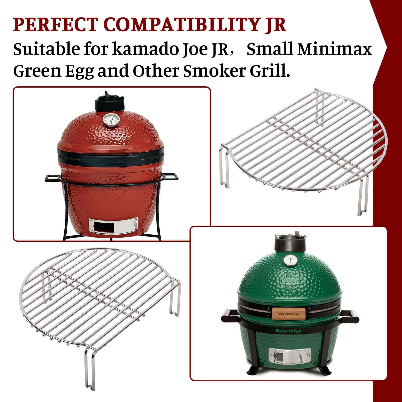 Rejilla ampliadora para parrilla Kamado Joe JR de acero inoxidable – Rejilla de apilamiento para expansión para Minimax Smal Big Size Green Egg y otros ahumadores. Este producto está hecho de material de acero inoxidable de grado alimenticio 304, lo que garantiza que los alimentos no produzcan sustancias dañinas. Es seguro y confiable, con un excelente efecto antioxidante y un rendimiento de alta calidad duradero. Esta rejilla es perfecta para la parrilla Kamado Joe JR, Small Minimax Green Egg y otros ahumadores. Al asar a la parrilla, con un extensor, puede aumentar el área de la parrilla y hacer diferentes alimentos al mismo tiempo. Puede asar pizza, freír filete al mismo tiempo o hacer verduras y carne en dos capas. Las 3 patas de la parrilla de acero inoxidable elevan la placa de la parrilla a una altura adecuada para mantener los elementos alejados del horno principal de la parrilla, permitiendo que los elementos se calienten. Se convierte en una parrilla de dos niveles que mejora enormemente su progreso en la parrilla y puede cocinar muchos ingredientes. Hemos actualizado el extensor de la parrilla con una estructura desmontable, lo que lo hace fácil de limpiar en un lavaplatos, lo que es conveniente y ahorra esfuerzo.