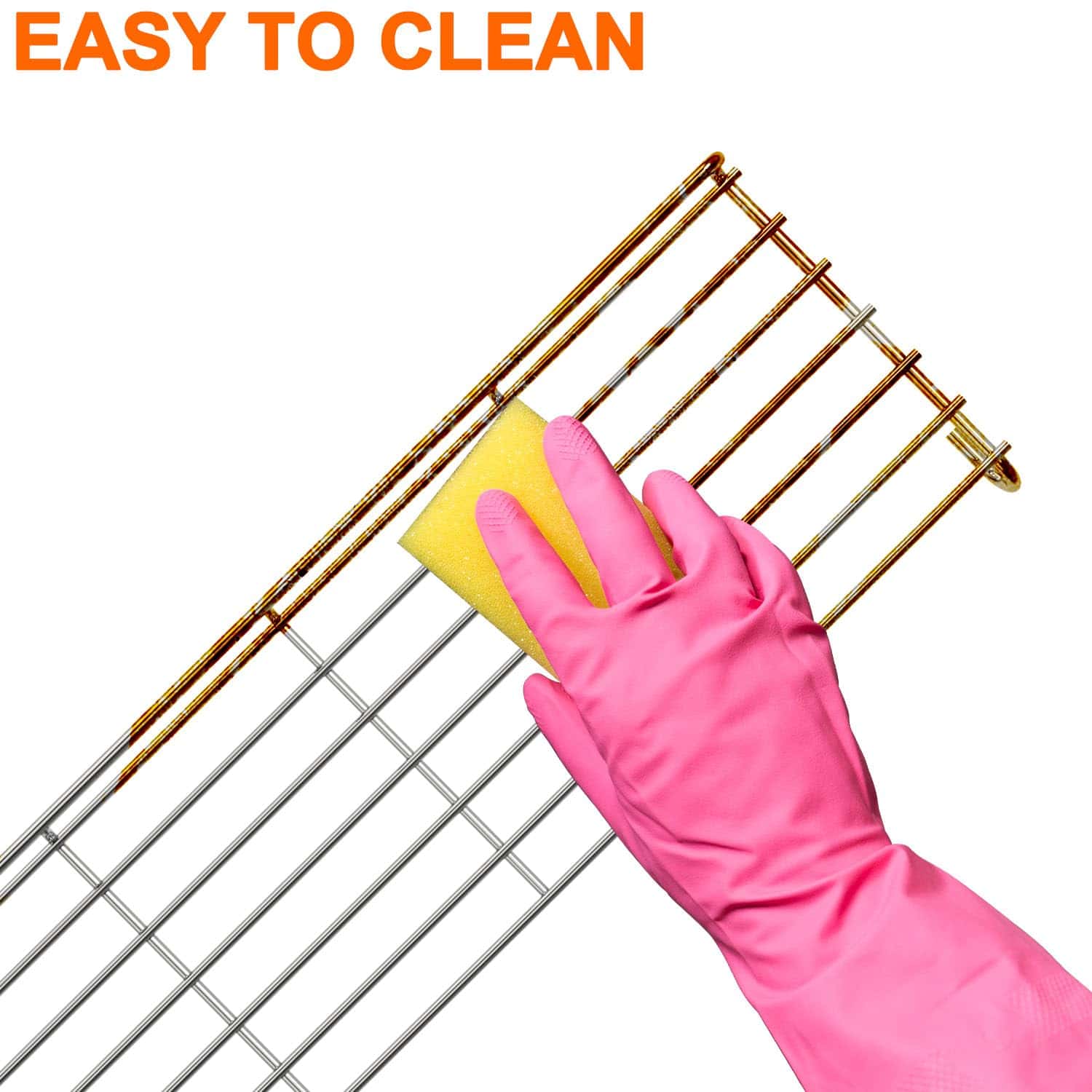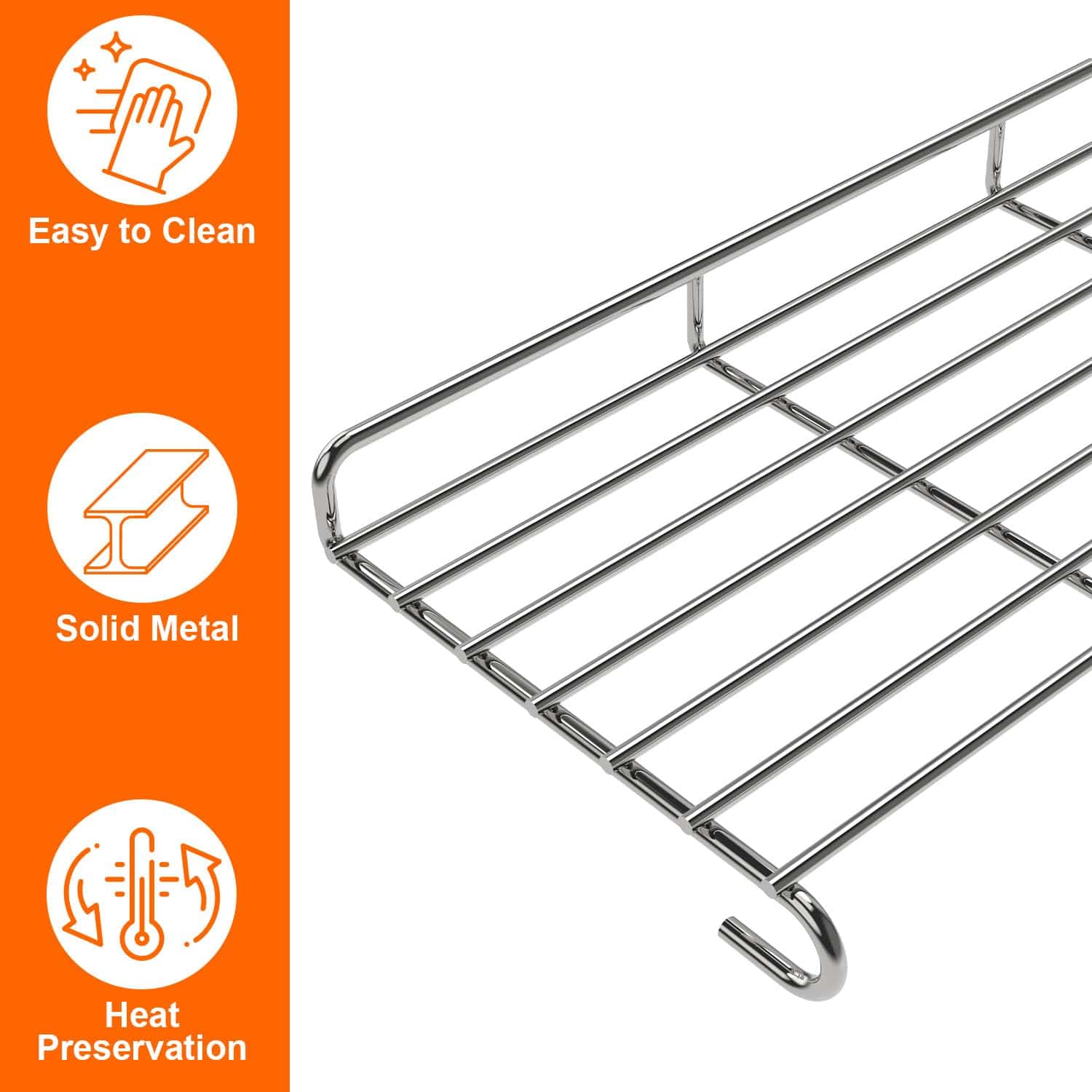 4. Fácil de instalar y limpiar Solo toma unos minutos instalarlo y es muy simple aumentar el espacio de cocción, lo que aprovecha al máximo la superficie de la parrilla. Superficie lisa, aceite antiadherente, fácil de limpiar, solo lávalo con agua jabonosa, luego sécalo para extender la vida útil de la Rejilla Calentadora para Parrillas.