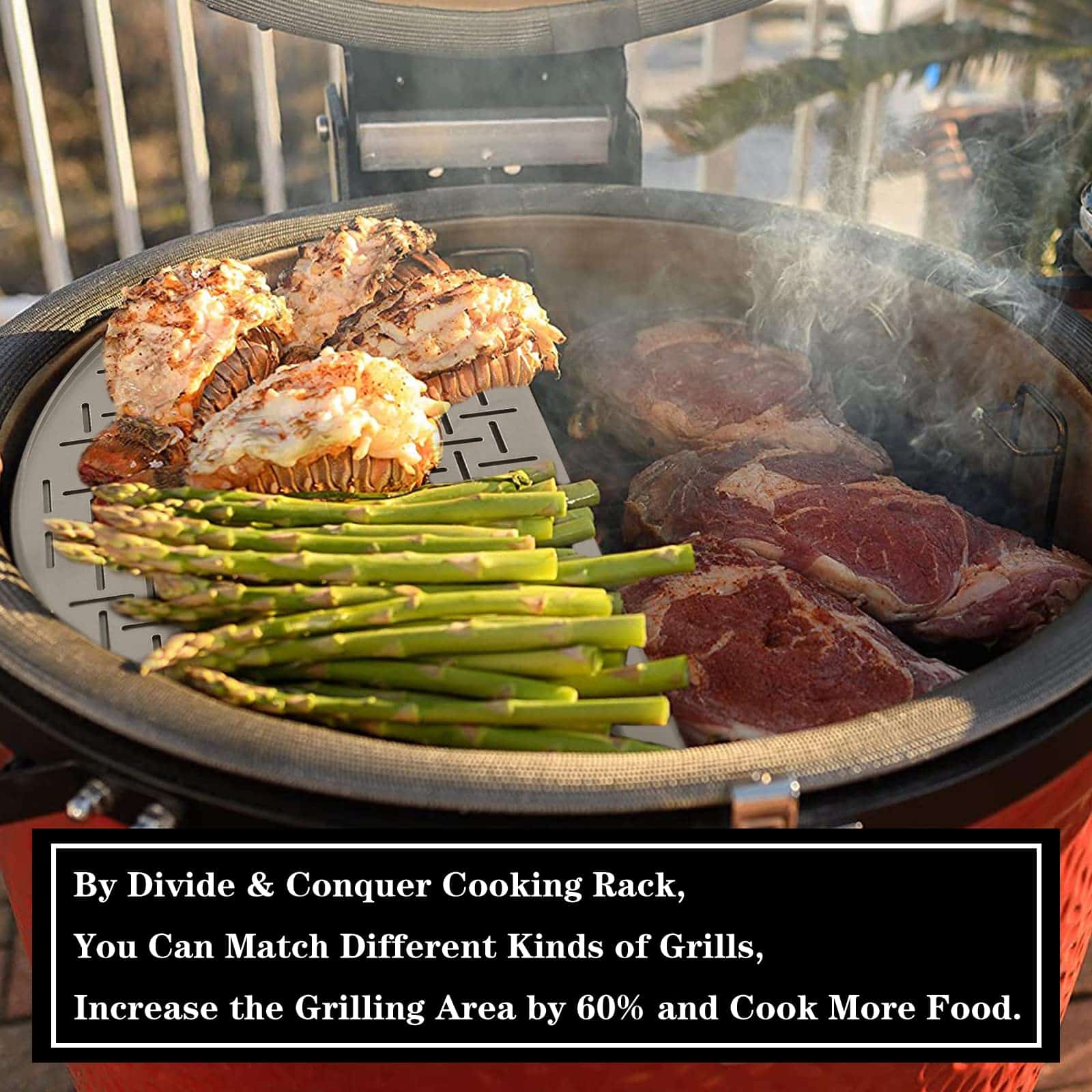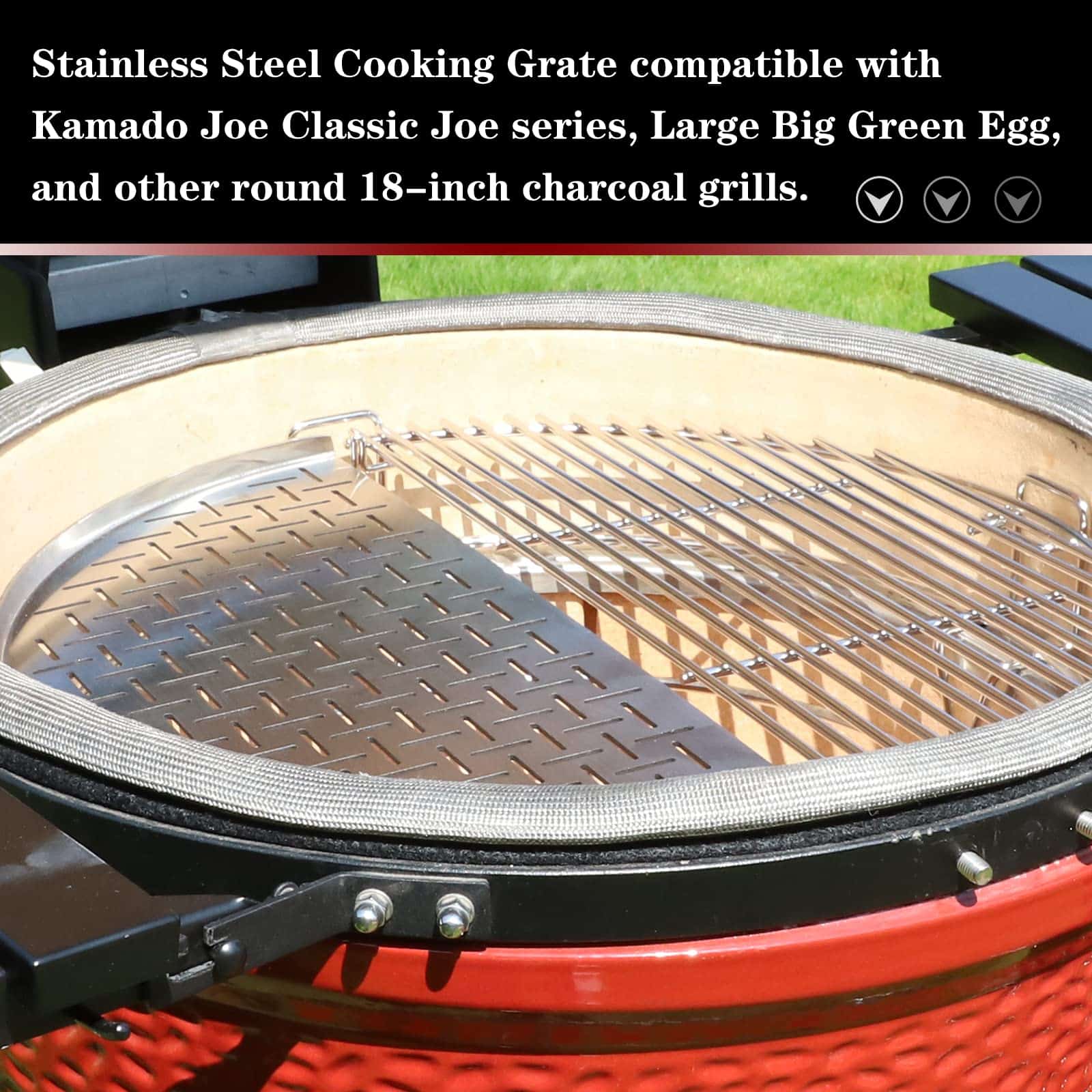 4. ADECUADO PARA LA SERIE KAMADO JOE CLASSIC JOE Rejilla de hierro fundido de acero inoxidable de 18 pulgadas compatible con Kamado Joe Classic Joe Series, Big Green Egg de tamaño grande y otras parrillas de carbón redondas de 18 pulgadas.