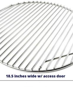 La rejilla de cocina de 18.5 pulgadas con bisagra de LavaLock para Big Green Egg y otros cocedores Kamado está hecha de grueso acero inoxidable 304 y está soldada expertamente. La parrilla redonda de 18.5 pulgadas tiene un área con bisagra para acceder fácilmente a la caja de carbón de la parrilla Kamado.