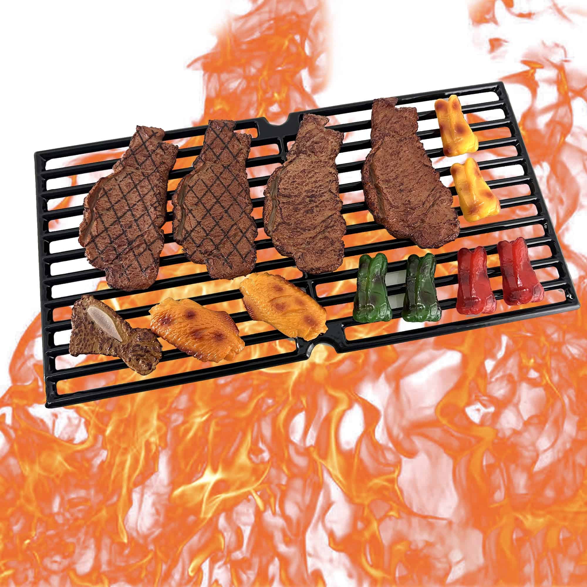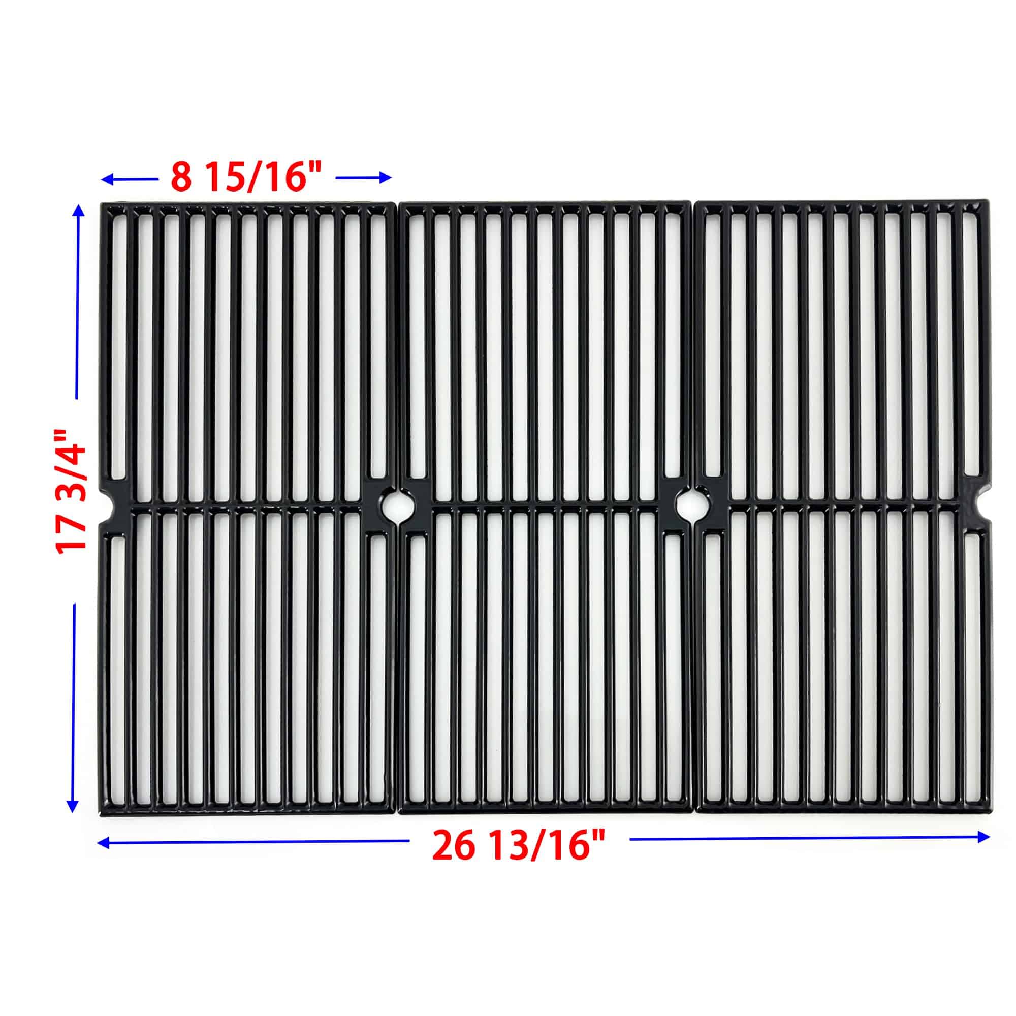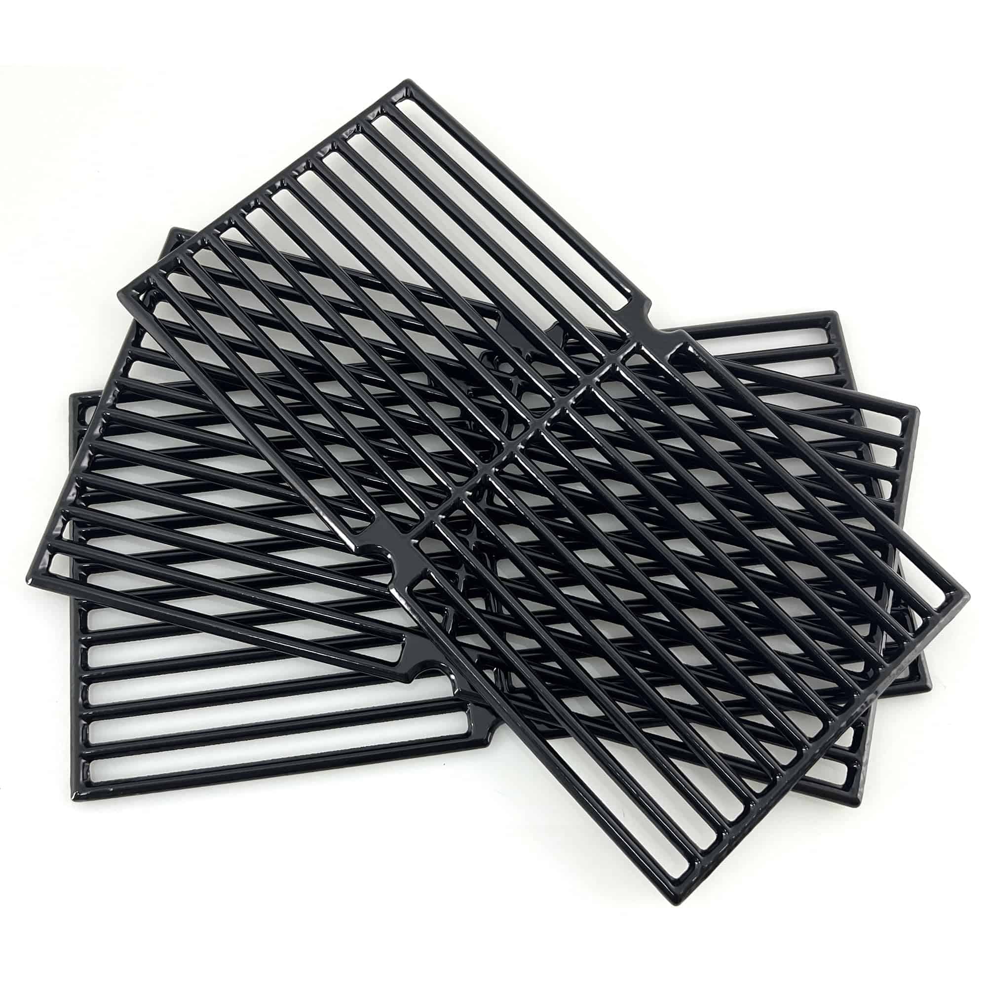Rejilla de cocina de hierro fundido con recubrimiento de porcelana pulida DC110 de Direct Store Parts, ideal como repuesto para parrillas de gas Brinkmann y Charmglow. Dimensiones: 8 15/16″ x 17 3/4″ Cada una o 26 13/16″ x 17 3/4″ en total.