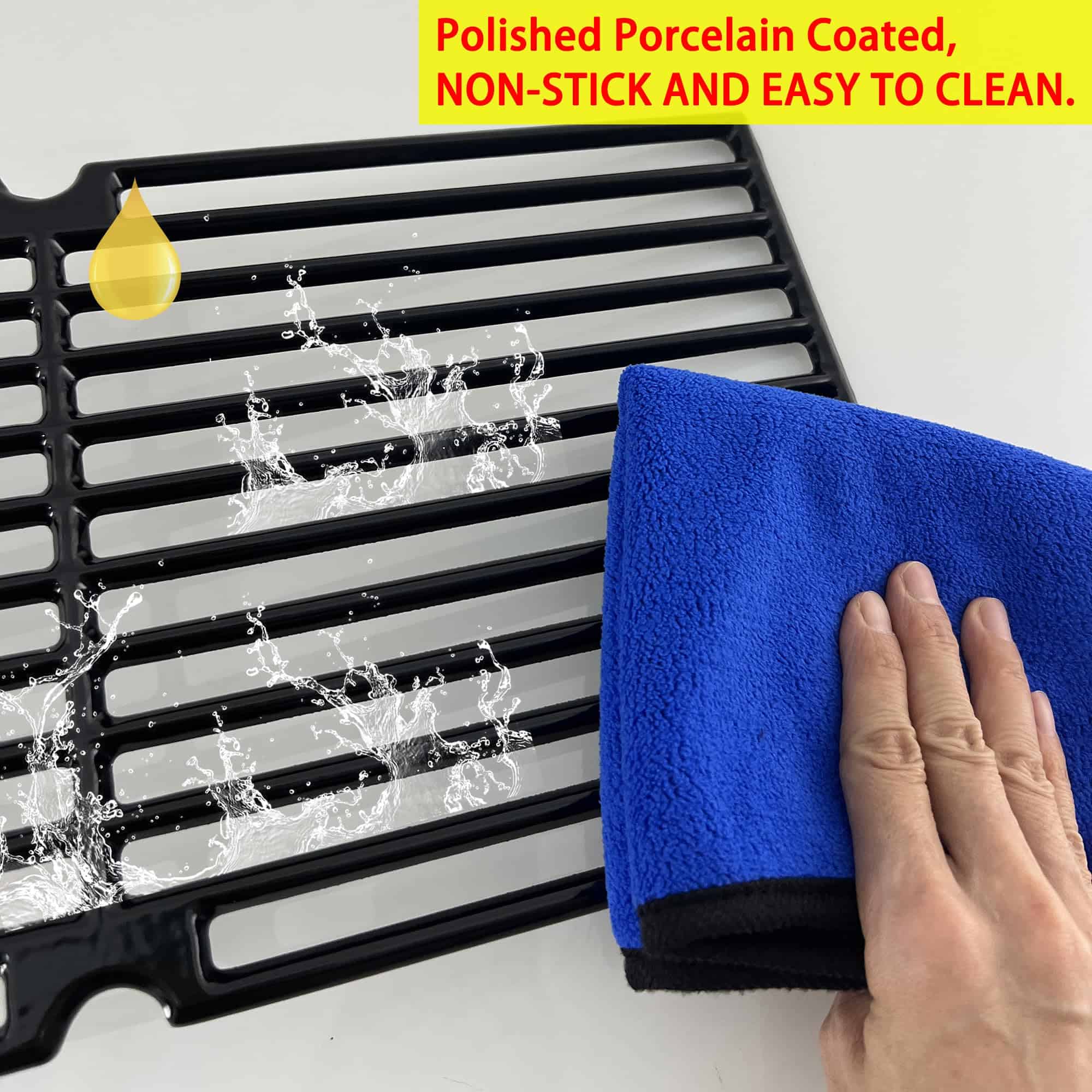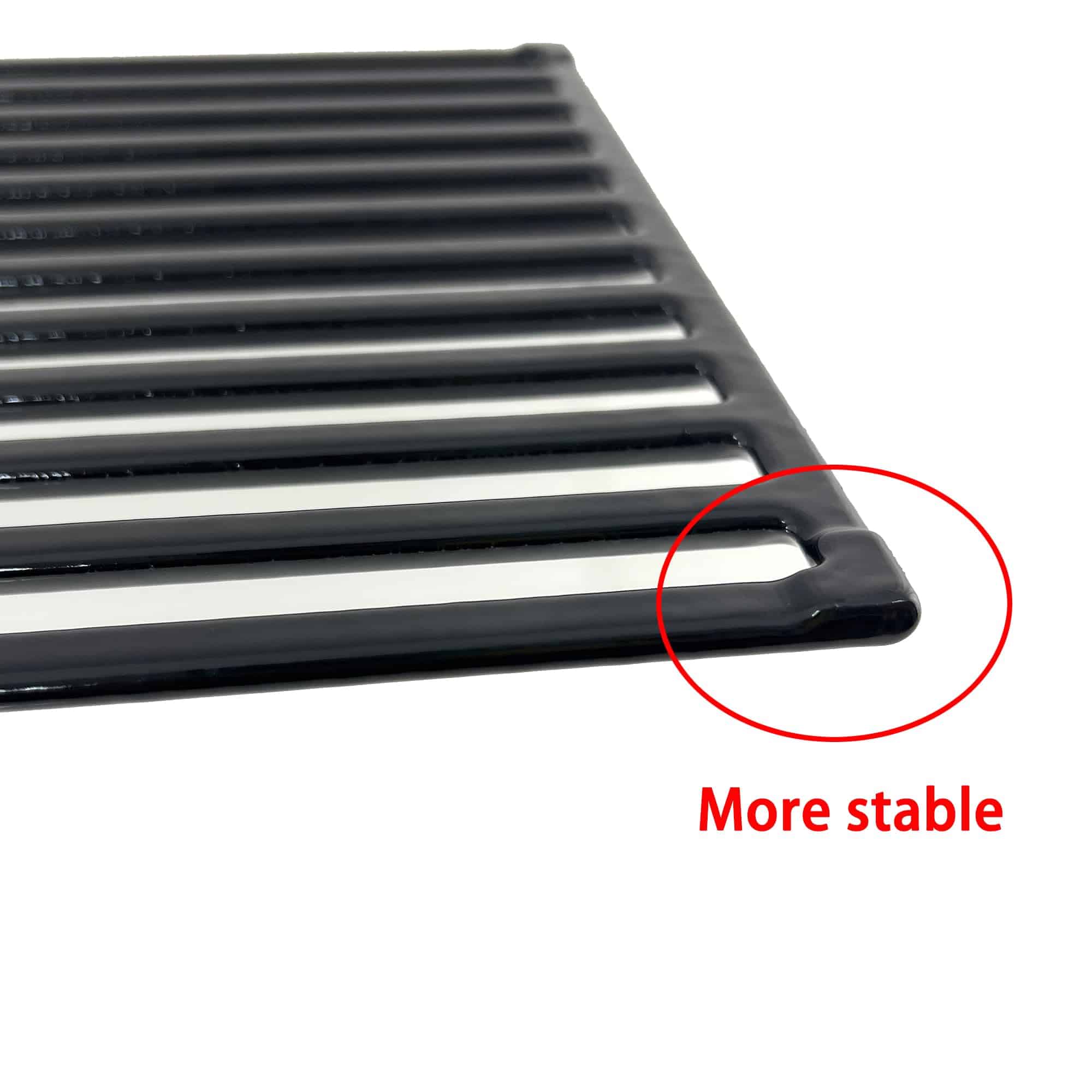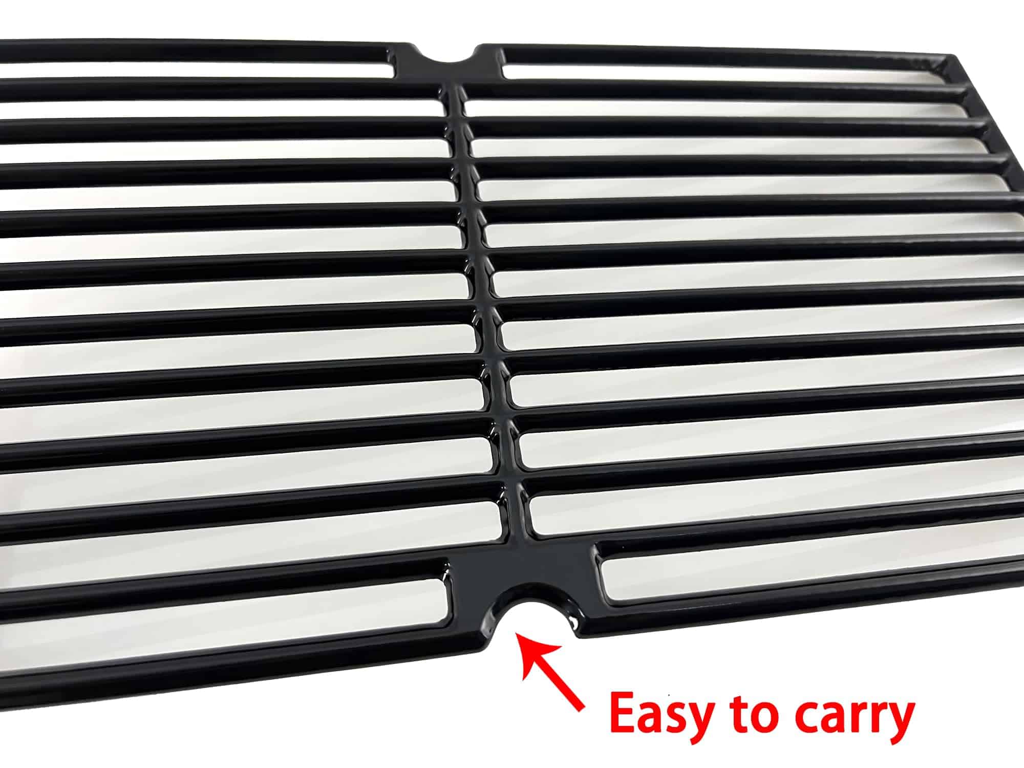 Rejilla de cocina de hierro fundido con recubrimiento de porcelana pulida DC110 de Direct Store Parts, ideal como repuesto para parrillas de gas Brinkmann y Charmglow. Dimensiones: 8 15/16″ x 17 3/4″ Cada una o 26 13/16″ x 17 3/4″ en total.