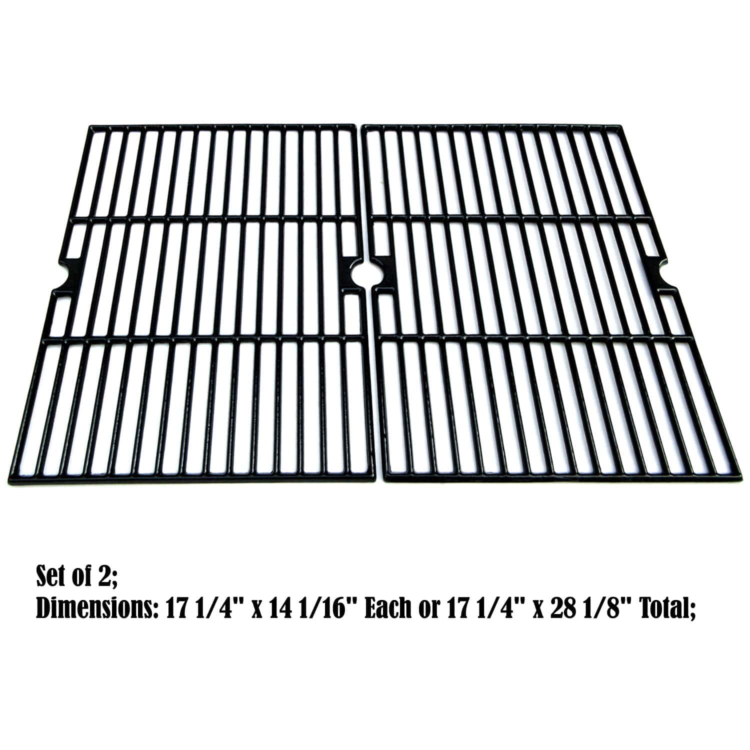 Rejilla de cocina de hierro fundido recubierto de porcelana pulida DC111 Direct Store Parts de reemplazo para Brinkmann, Aussie, Members Mark, Nexgrill, Better Homes&Gardens, Grill Chef, Grill King, Mission Gas Grill; Dimensiones: 17 1/4″ x 14 11/16″ cada uno, 17 1/4″ x 28 1/8″; Material: Hierro fundido recubierto de porcelana pulida; El kit de Direct Store Parts incluye 2 rejillas de cocina de hierro fundido esmaltado; Reemplazo para Brinkmann: 810-8425-S, 810-9490-0, 810-9490-F; Reemplazo para Nexgrill: 720-0582B, 720-0649, 720-0691A, 720-0778A; Reemplazo para Members Mark: 720-0582B,720-0691A, 720-0778A, 720-0778C, 730-0691A; Reemplazo para Mission BG1764B-A, BG1764B-B;