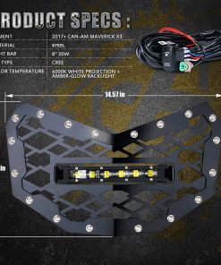 1x Rejilla de malla de acero Xprite con barra de luz LED de 8″ para Can-Am Maverick X3