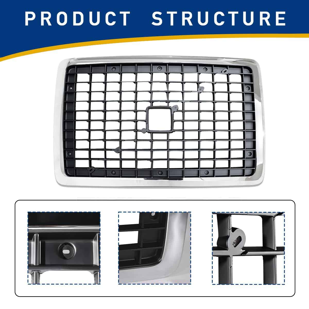 3. Diseño Único: Este conjunto incluye la parrilla, la barra cruzada y el hardware de montaje. Reemplace su parrilla del radiador y refresque la apariencia de su camión.
