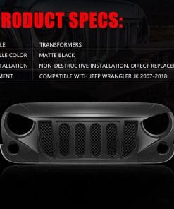 DKMGHT Rejilla Delantera con Rejilla de Malla Negra Mate. Diseño único con ceja de espada llena de ira, que añade un efecto visual agresivo. El estilo Transformer hace que tu Jeep Wrangler JK se destaque entre la multitud. Fabricado con material de PP de alta calidad, la superficie negra mate es resistente a daños por arañazos y garantiza un uso prolongado. Su durabilidad extremadamente alta permite resistir los elementos y los peligros de la conducción todoterreno. Los agujeros para faros y luces de giro facilitan la instalación sin necesidad de perforar, y se ajusta perfectamente a los agujeros de montaje originales. Compatible con Jeep Wrangler JK JKU 2 & 4 puertas (Sports, Sahara, Freedom & Rubicon) 2007-2018. No se adapta a JL 2018. 365 días de garantía y servicio al cliente relacionado garantizan una experiencia de compra sin preocupaciones. Contáctanos ante cualquier incidencia con las luces DKMGHT.