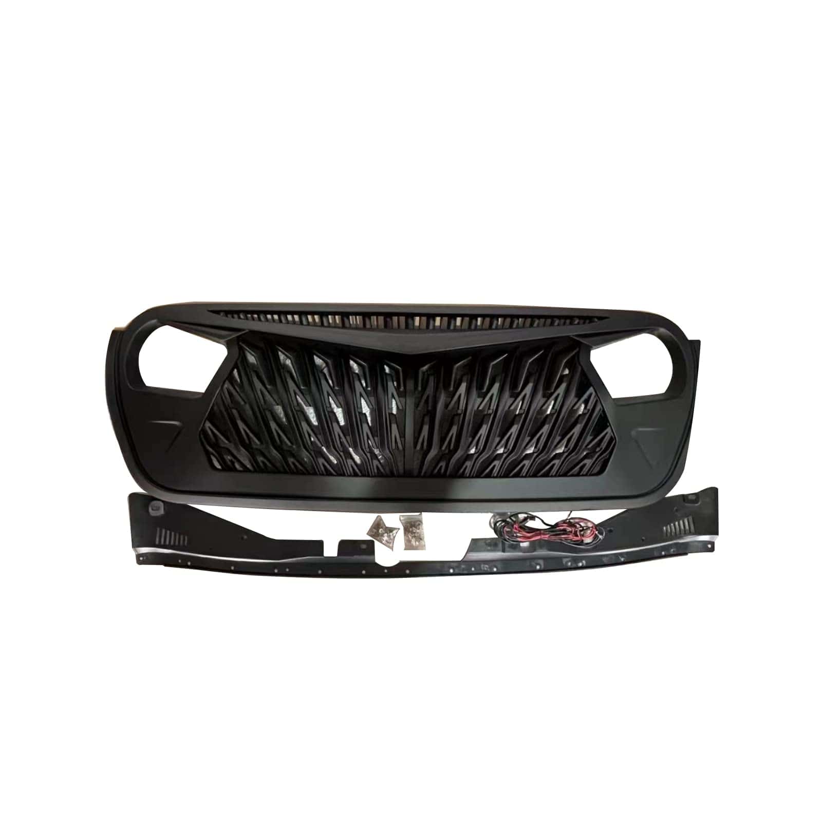 1. Aplicación. Esta Rejilla de Tiburón Modificada con LED está diseñada para adaptarse a los modelos Jeep Wrangler JL 2018-2023. Esta es una rejilla de reemplazo, no una superposición.