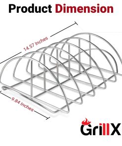 4. Espacio Generoso: Nuestra rejilla de barbacoa de 16x10x4.5 pulgadas acomoda cómodamente múltiples costillas simultáneamente, garantizando una cocción pareja y completa. Ya sea un festín extravagante o una cena familiar acogedora, nuestra parrilla de acero inoxidable es todo lo que necesitas para lograr sesiones de barbacoa increíbles.
