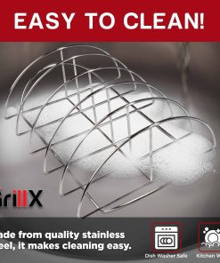 2. Parrilla Antiadherente y Segura para Alimentos: Aquí en GrillX, valoramos profundamente tu salud y seguridad, lo cual se refleja en nuestro compromiso de usar solo materiales de grado alimenticio para nuestra rejilla para costillas. Mientras disfrutas de la experiencia de asar, ten la seguridad de que no habrá productos químicos no deseados interfiriendo con tu comida.