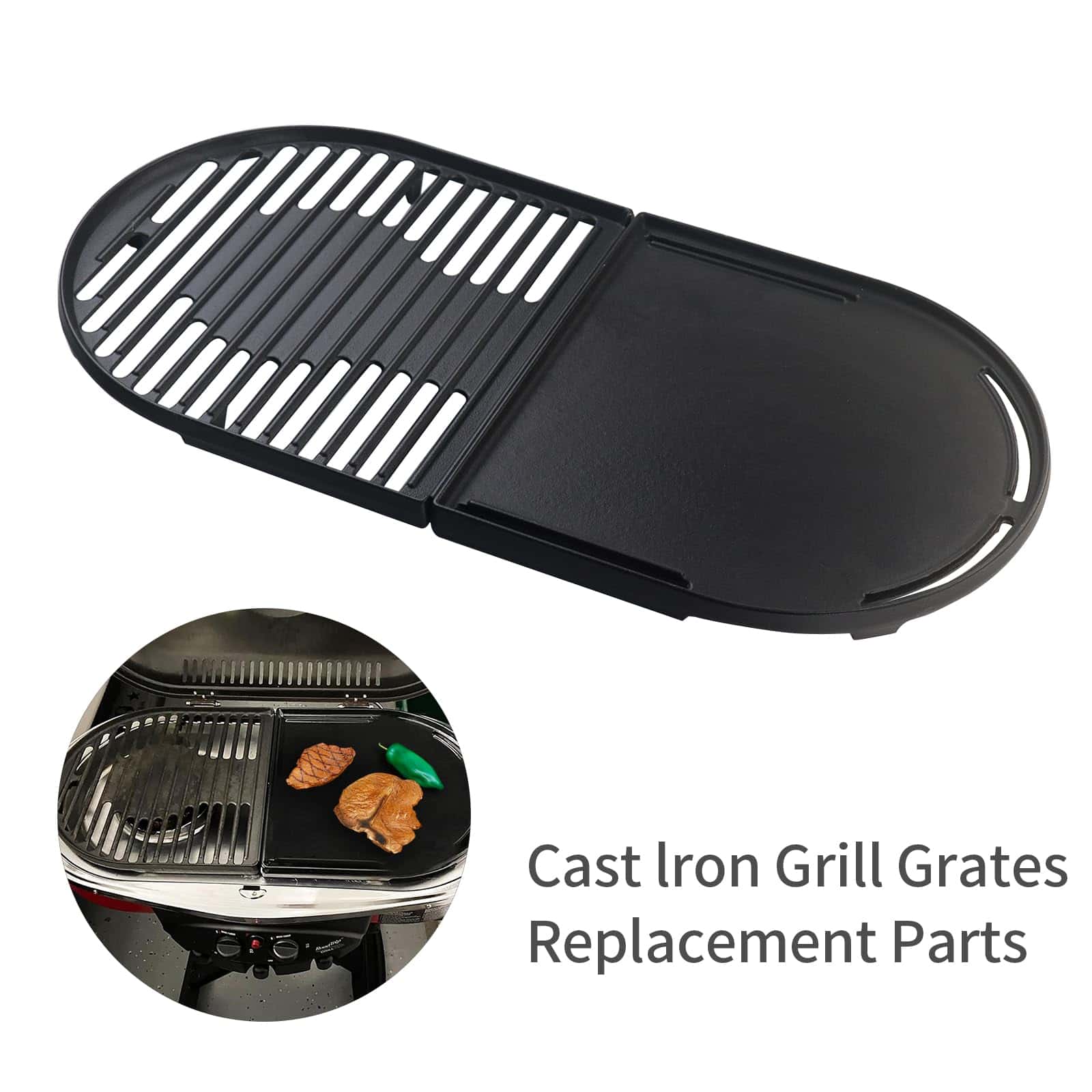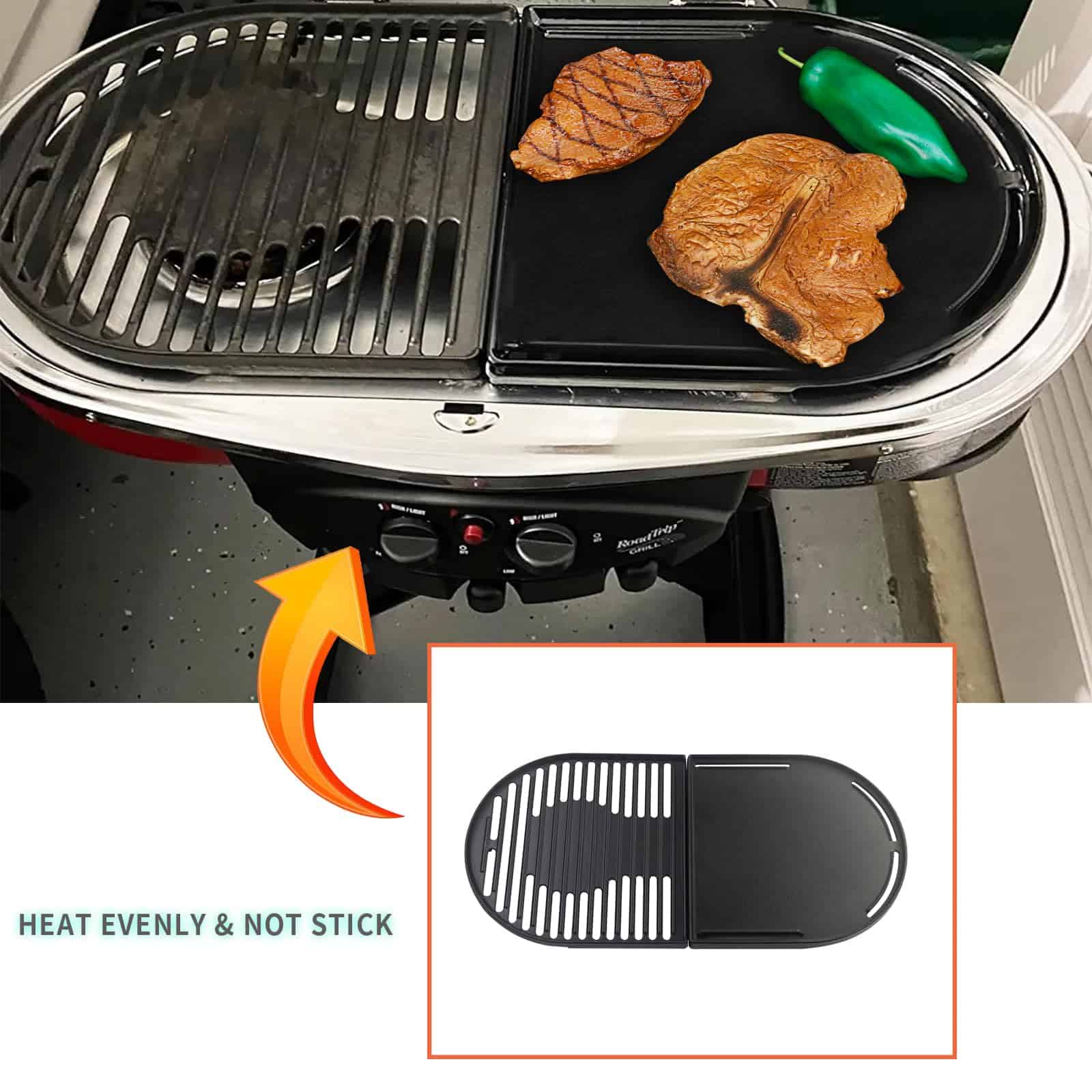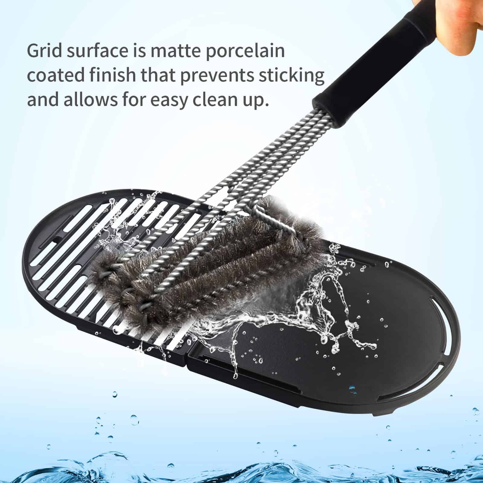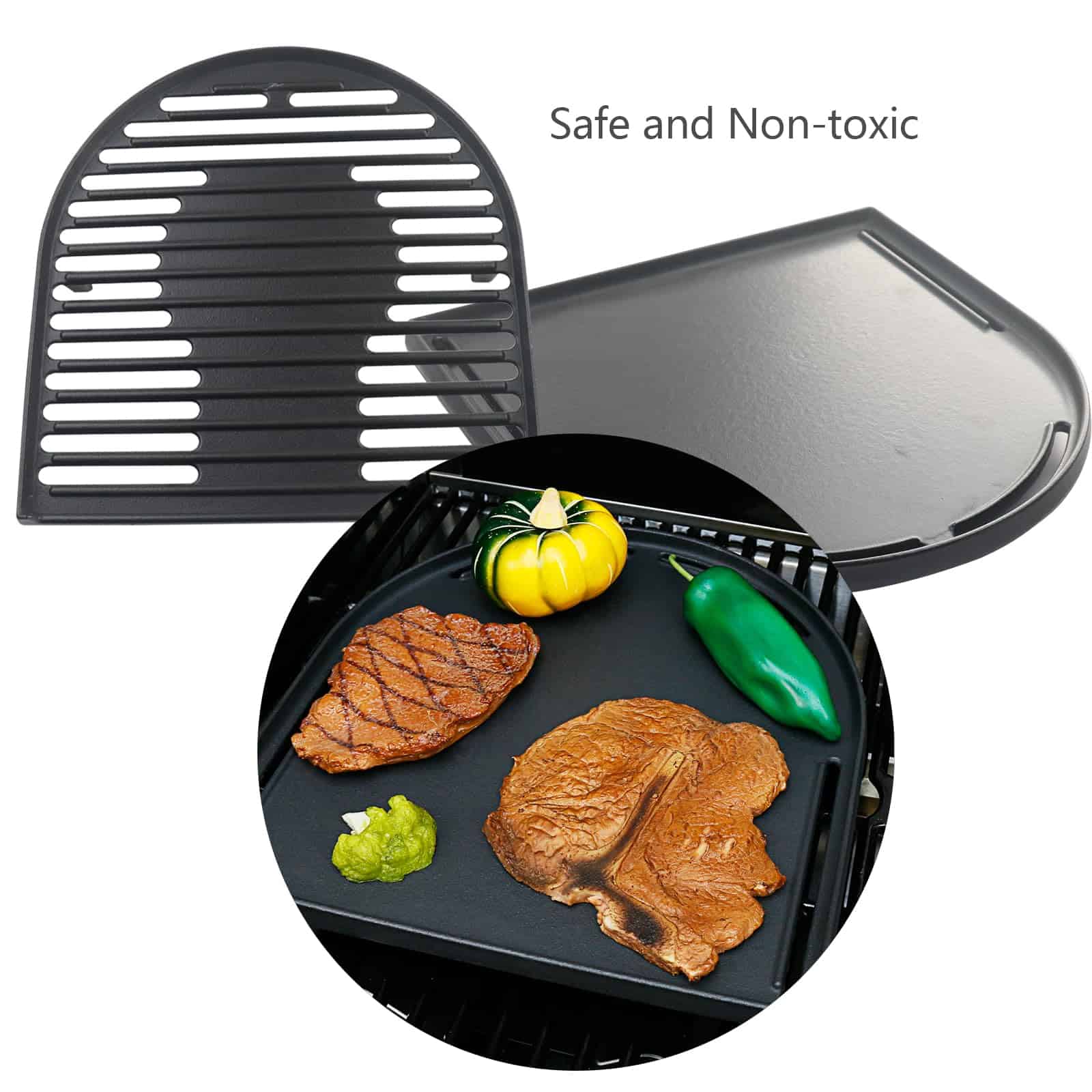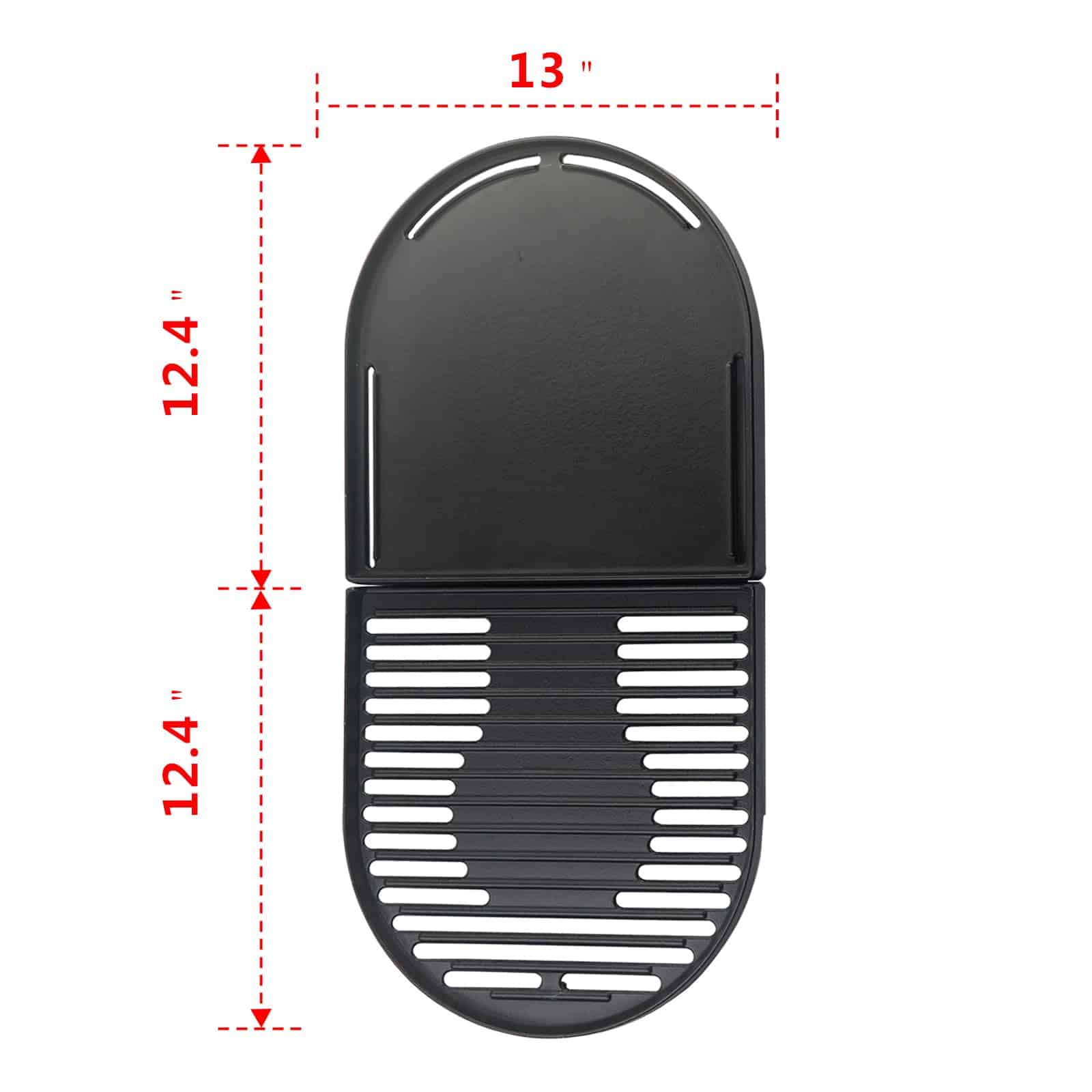 2. Dimensiones y Área de Cocina 13″ x 12.4″ x 1.18″ para 1 rejilla, 13″ x 12.4″ x 1.18″ para 1 parrilla, 13″ x 24.8″ x 1.18″ en total. Amplia área de cocción de 142 pulgadas cuadradas por cada rejilla, total de 285 pulgadas cuadradas. Paquete incluye 1 parrilla mitad para cocinar, 1 rejilla para parrilla.