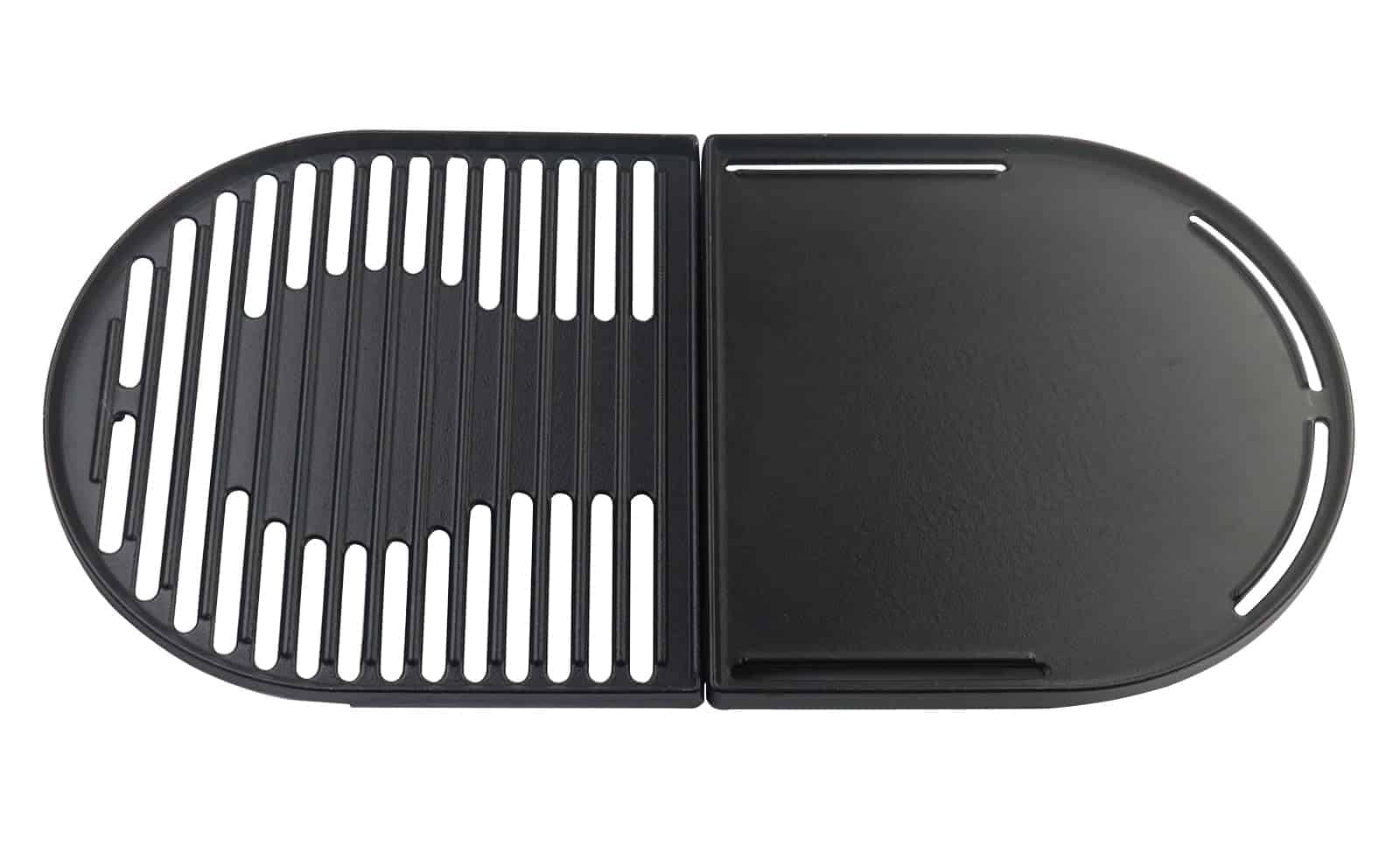 3. Material Hecho de hierro fundido resistente para garantizar un uso duradero. No se astilla ni se oxida como las rejillas esmaltadas. Calienta de manera uniforme en toda la superficie, conservando el sabor original de los alimentos.