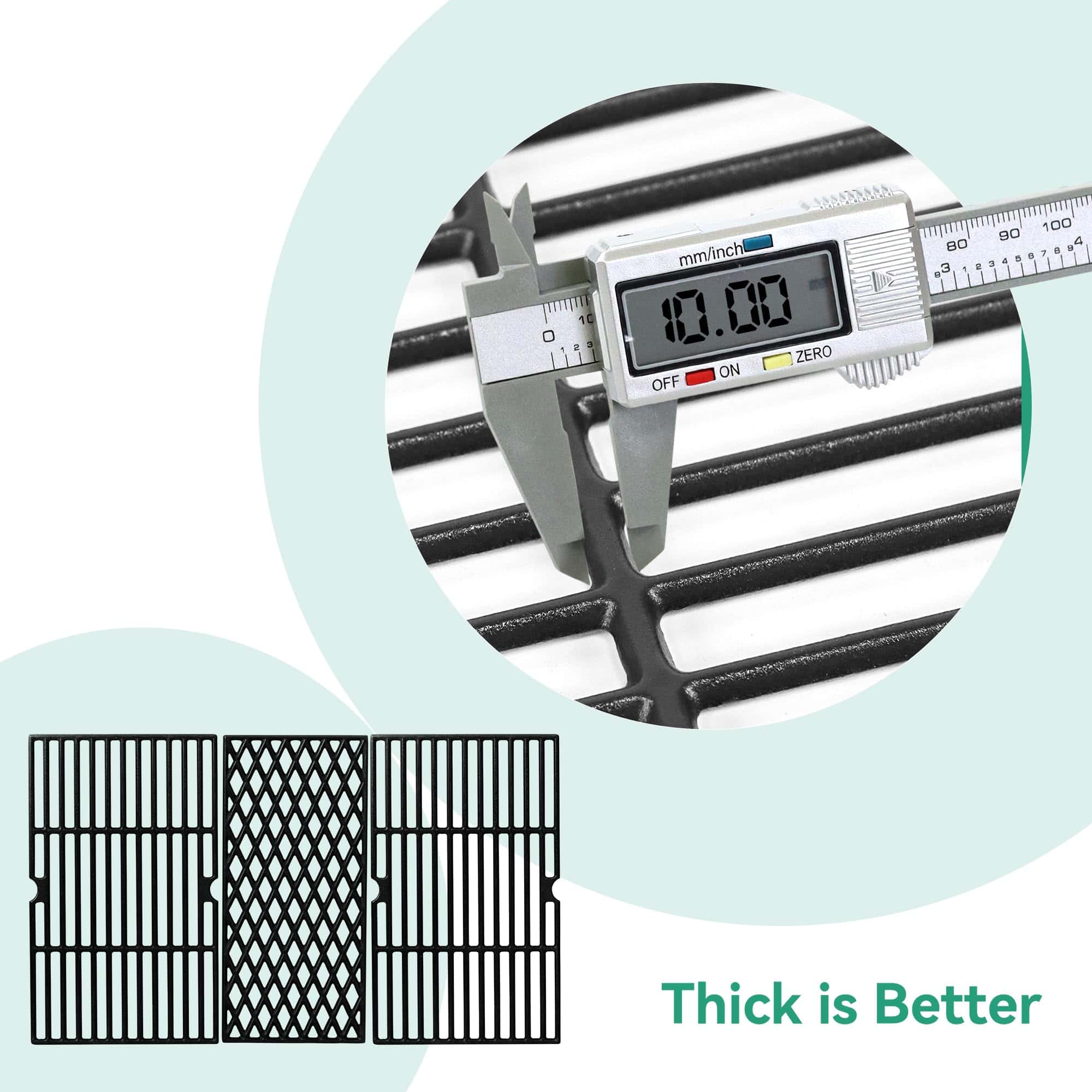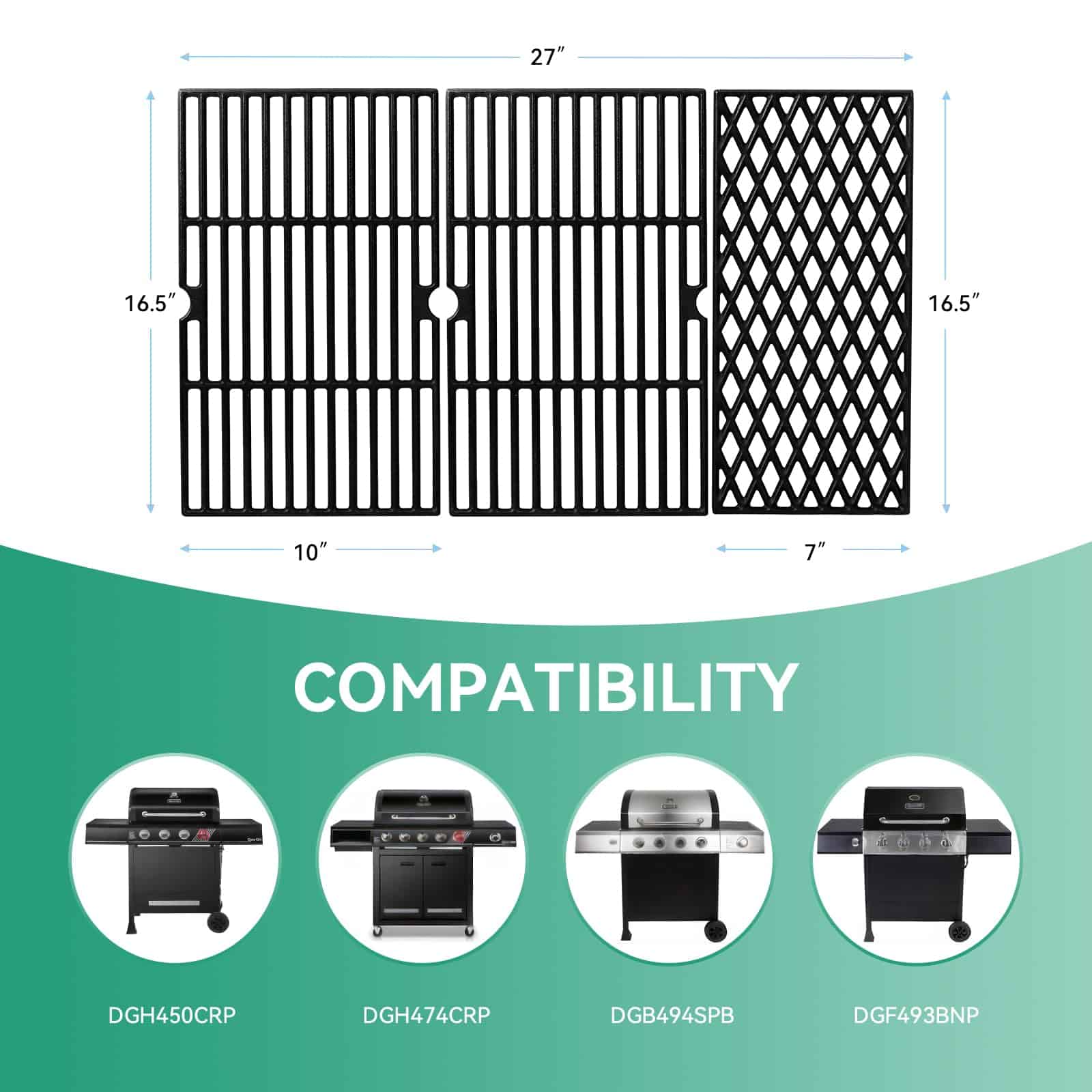 3. Incluye 1 x Rejilla de hierro fundido en forma de diamante y 2 x Rejillas de cocción de hierro fundido. Material: Rejillas de hierro fundido Dyna Glo mate; Número de piezas originales: Piezas de repuesto para Dyna-Glo Número de parte 70-01-911;