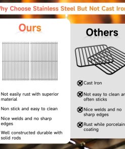 5. Fácil de Limpiar: Las rejillas de cocina de acero inoxidable son suaves y antiadherentes, después de usar sólo necesitas usar agua con detergente y cepillar suavemente para limpiarlas perfectamente, mejor que la malla de hierro fundido más fácil de limpiar.