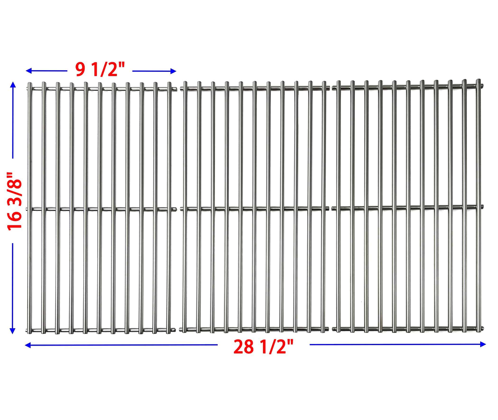 Rejillas de Cocina de Acero Inoxidable Sólido Direct store DS103 16 3/8″ x 9 1/2″ 3pk Reemplazo para Uniflame GBC1030W, GBC1030WRS, GBC1030WRS-C, GBC1134W, GBC1134WRS; compatible con parrillas de gas Backyard BY14-101-001-099, GBC1449W-C, GBC1449WBS-C, GBC1449WRS-C; Incluye un juego de 3 rejillas, Dimensiones: 16 3/8″ x 9 1/2″ cada una o un total de 16 3/8 x 28 1/2″; Material: Acero Inoxidable Sólido, Diámetro de la varilla 7mm, alta calidad, resistente, durará más tiempo. Reemplazo para modelos Uniflame GBC1030W, GBC1030WRS, GBC1030WRS-C,GBC1134W, GBC1134WBL, GBC1134WRS, GBC1134WRS-C, GBC1134WS-C, GBC1343WP-U. También reemplazo para modelos de parrilla Backyard BY14-101-001-099, GBC1440WRSB, GBC1440WRSB-C, GBC1449G, GBC1449W, GBC1449W-C, GBC1449WBS, GBC1449WBS-C, GBC1449WP-C, GBC1449WRS, GBC1449WRS-C.