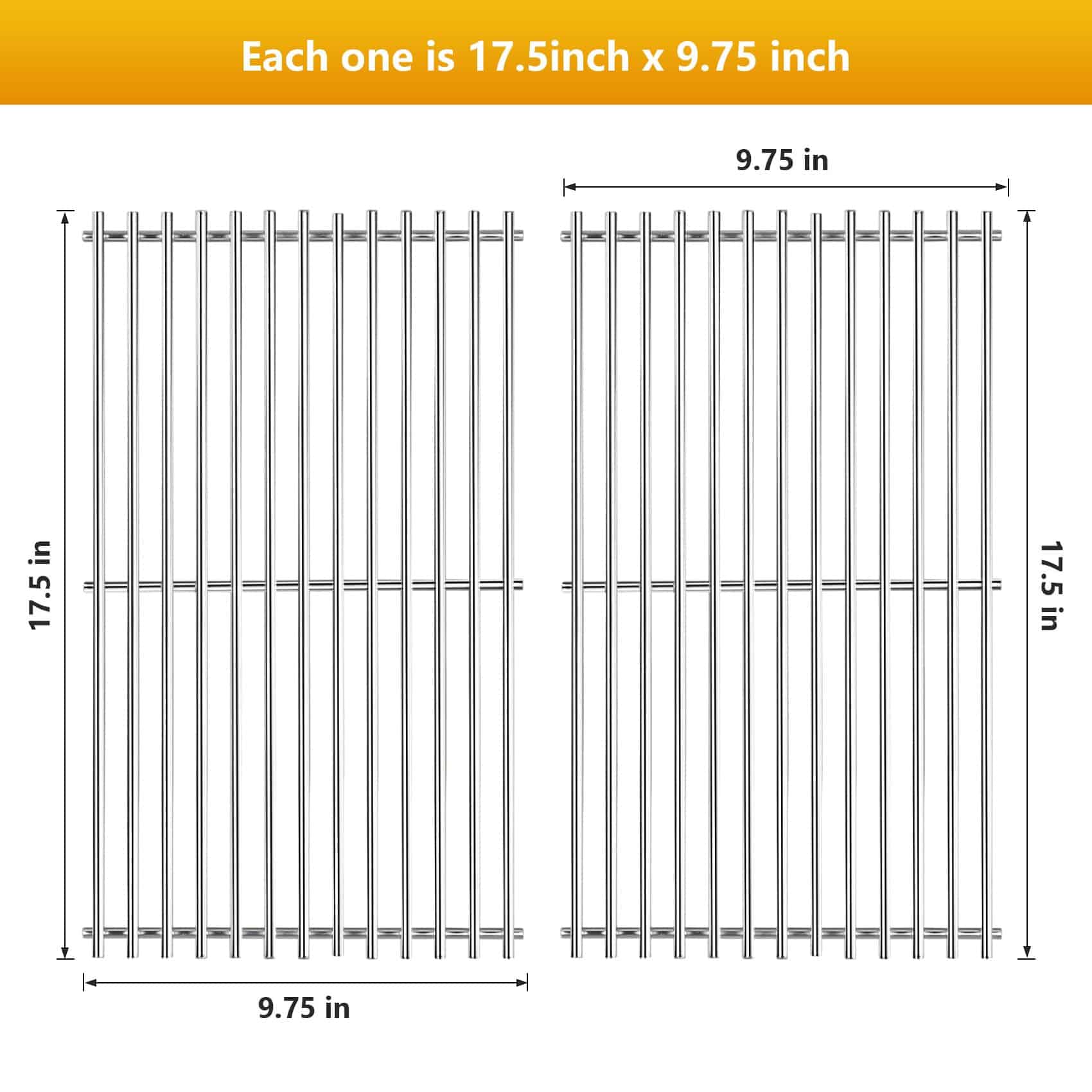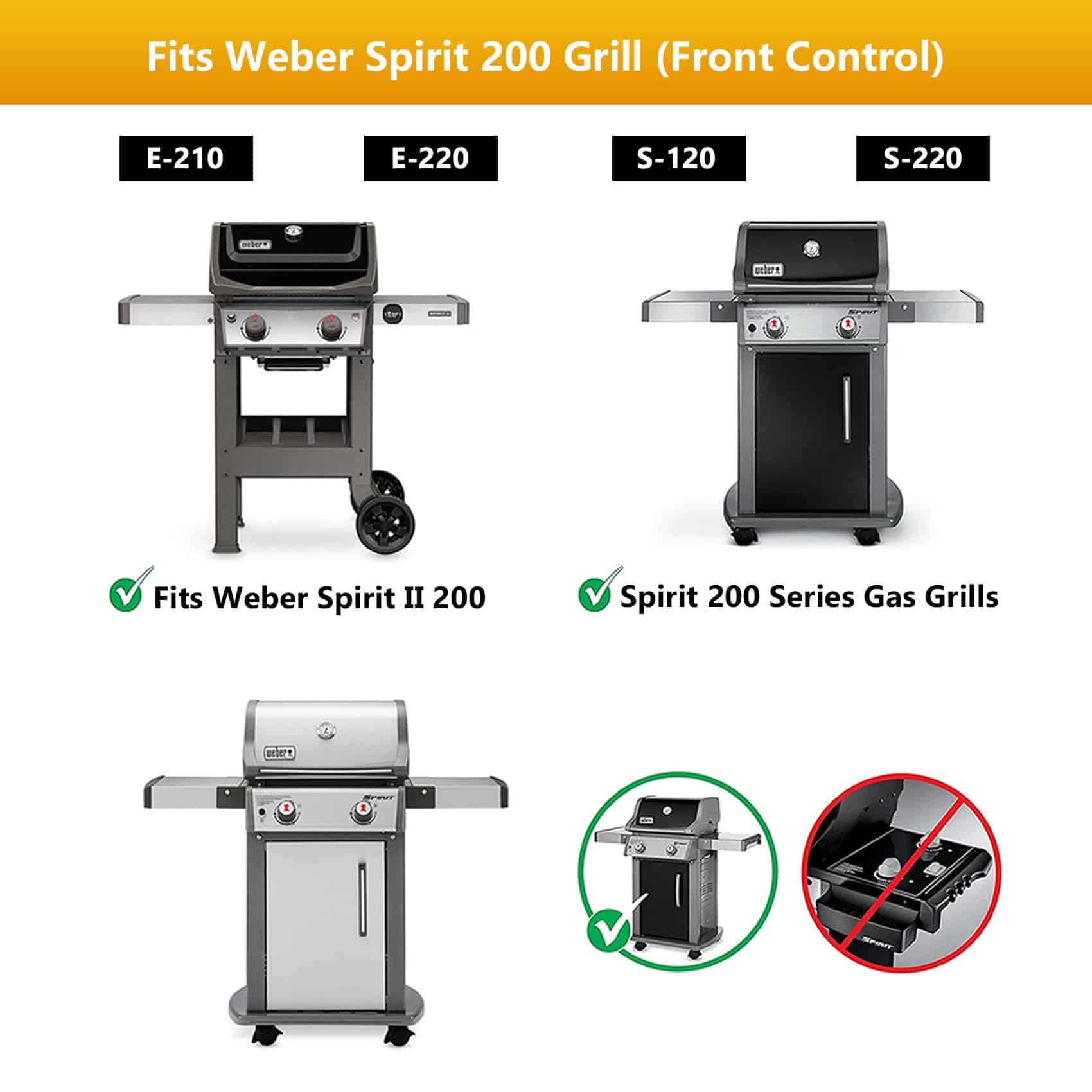 1. Se ajusta perfectamente: Rejillas de cocina para Weber 7637 y Parrillas de Gas de la Serie Spirit 200 de Weber: Spirit (2 Quemadores) Spirit E-210, Spirit E-220, Spirit S-210, Spirit S-220 (Años de Modelo 2013-2017) con paneles de control montados en el frente. Pieza de repuesto para parrillas de parrilla Weber 46010074, 46100001 (2013), 46110001, 46113101, 47100001 (2013).