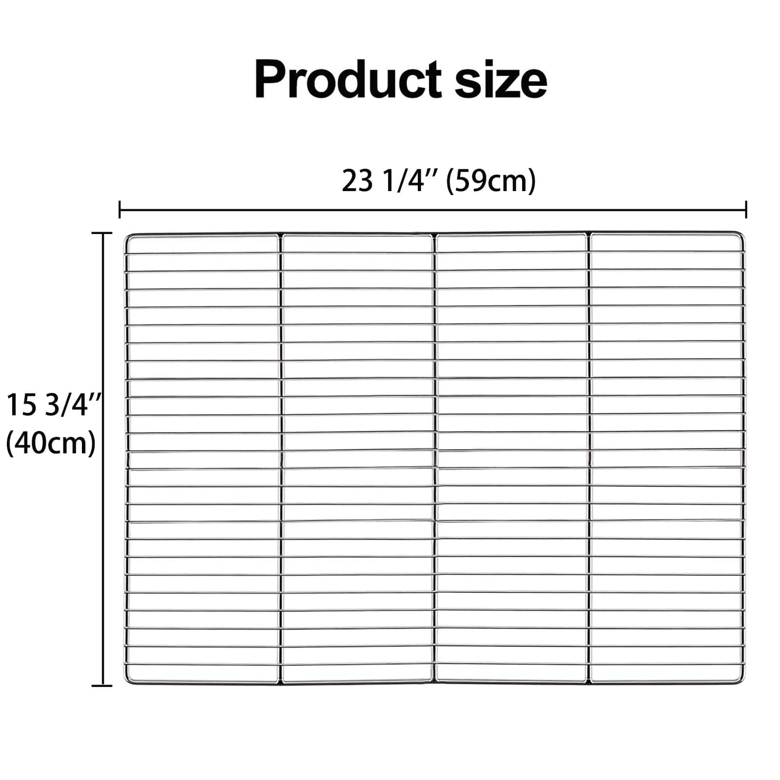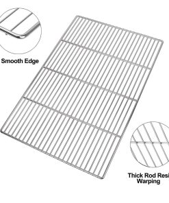 1. Materiales de Calidad: La rejilla de parrilla de acero inoxidable LANEJOY está hecha de acero inoxidable de grado alimenticio 304, es resistente a la corrosión, resistente a altas temperaturas, más duradera y nunca se oxida, lo que puede hacer que los alimentos horneados sean más seguros para que puedas disfrutar de la diversión de la parrilla. 2. Dimensión: La dimensión de cada rejilla de parrilla de acero inoxidable es de 23 1/4» 15 3/4», que está hecha de 4 mm y 2 mm, el espacio entre las barras es de 160 mm. Hay cuatro tamaños en esta serie, así que presta especial atención al tamaño antes de la compra y elige el tamaño más adecuado. 3. Fácil de Limpiar: La rejilla de parrilla rectangular tiene una superficie lisa que es fácil de limpiar. Cada vez después de limpiar, no se requiere trabajo adicional de prevención de óxido, lo que reduce en gran medida el esfuerzo de limpieza. 4. Relativamente Resistente: Si bien esta es una rejilla de cocción resistente que es ideal para asar bistecs gruesos, pollo o preparar pequeñas pizzas en un horno de caja, no es adecuada para cocinar en una chimenea porque no es una parrilla resistente. 5. Parrilla Multifuncional: Esta rejilla de parrilla de metal para barbacoa se utiliza principalmente para asar al aire libre, pero también se puede utilizar como rejilla de enfriamiento, rejilla de horno o rejilla de ahumador. Esta parrilla portátil es ligera y delgada, lo que la convierte en una gran compañera para tu parrilla al aire libre.