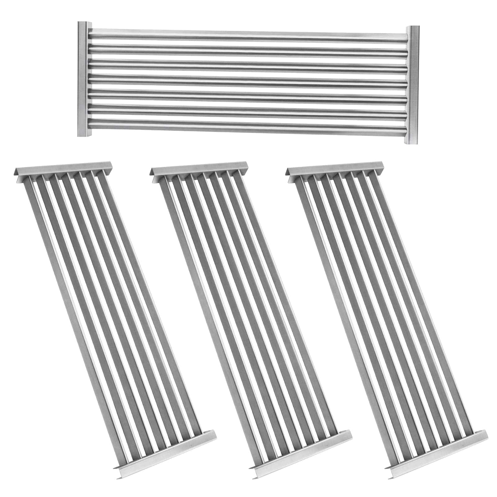 Material: Hemos mejorado nuestro material a acero inoxidable para una mejor resistencia a la corrosión y durabilidad. Dimensiones: 19 3/4″ x 6 3/4″ pulgadas para cada rejilla, 19 3/4″ x 27″ para 4 rejillas. Compatible con modelos de parrilla de gas Chargriller 2121, 2123, 2222, 2828, 3001, 3008, 3030, 3072, 3232, 3725, 4000, 4001, 4008, 4208, 5050, 5072, 5252, 5650, 9020. Incluye 4 rejillas de parrilla de cocina.