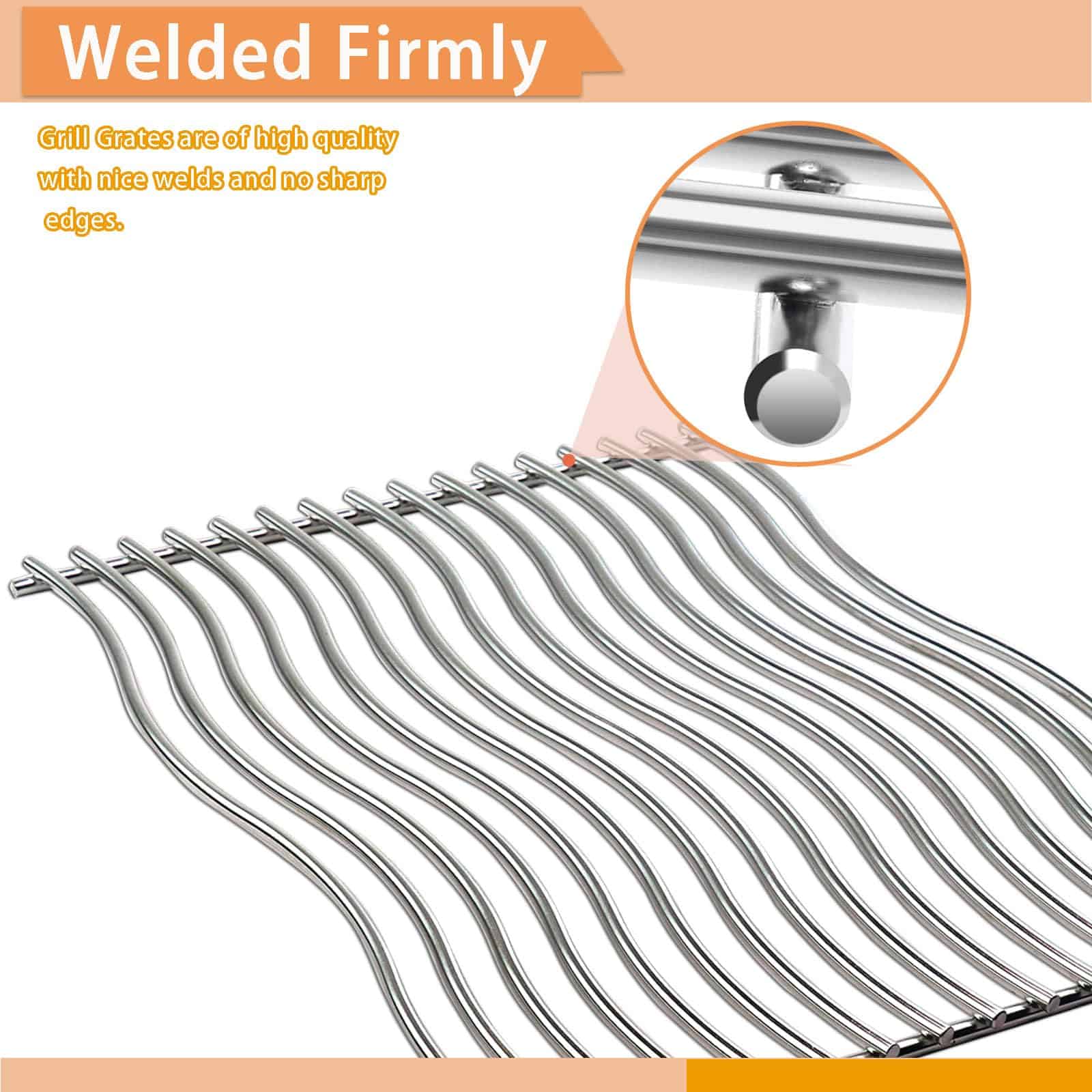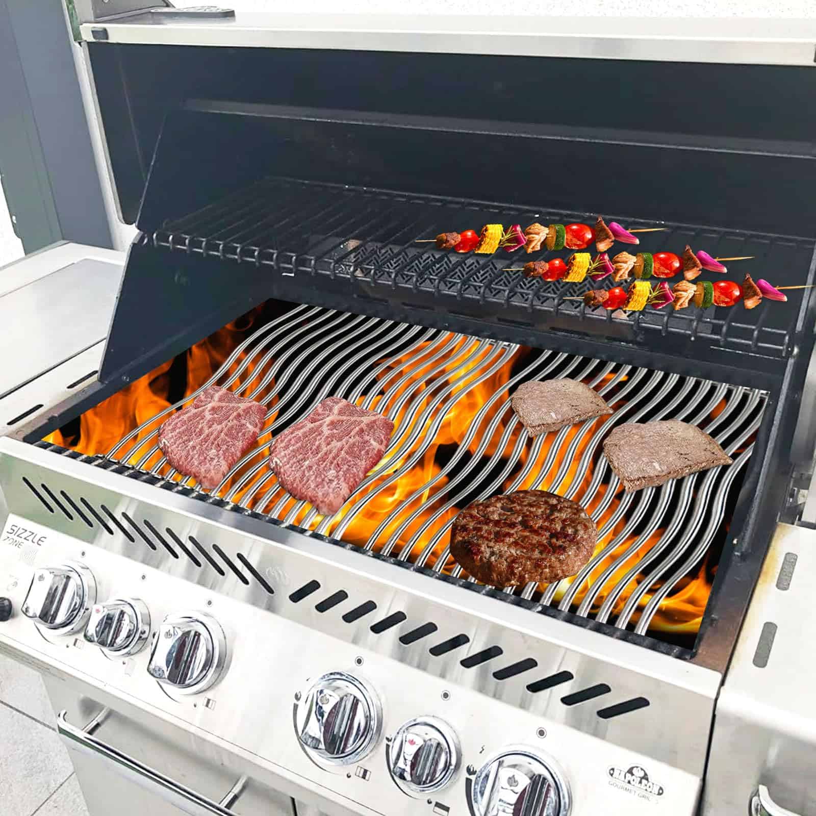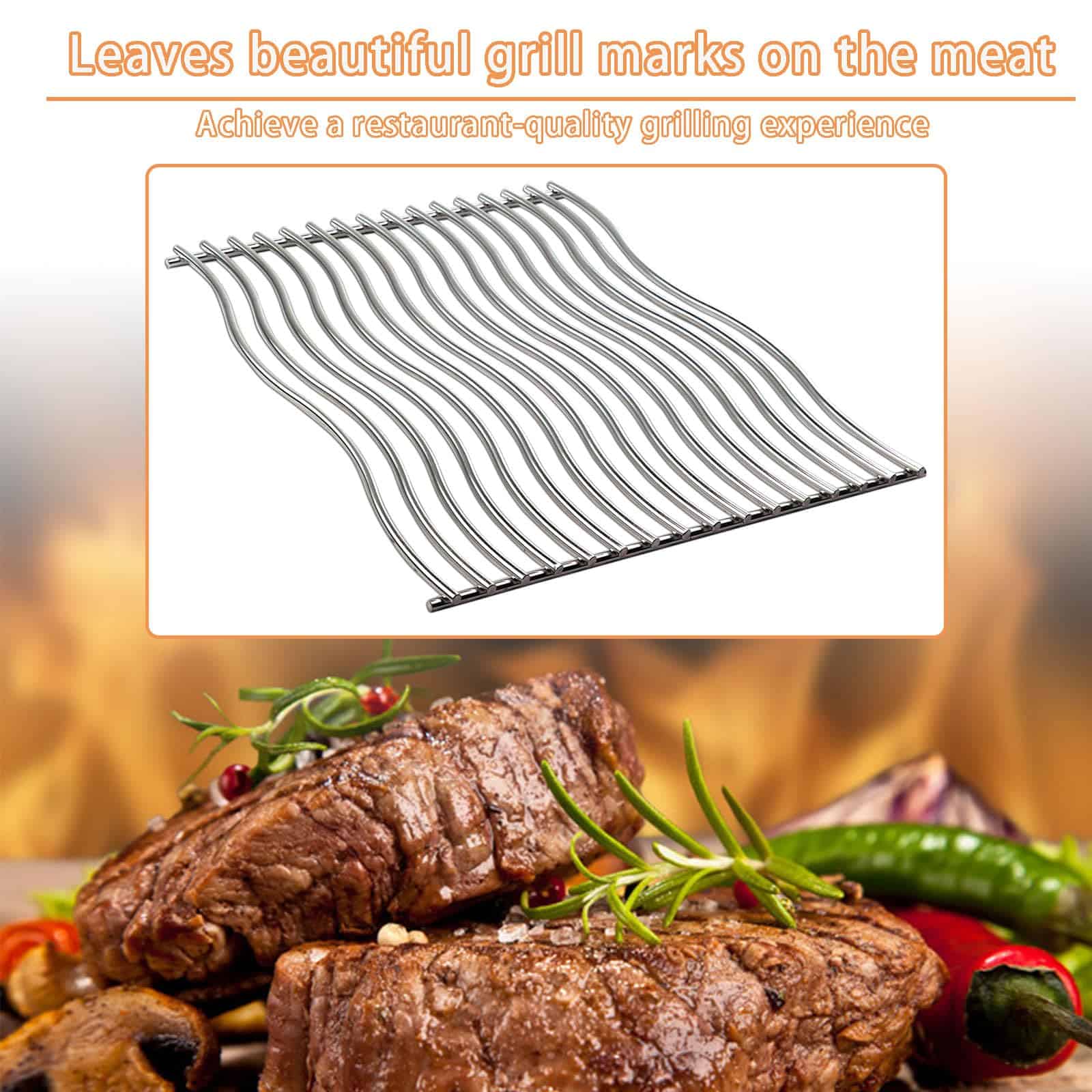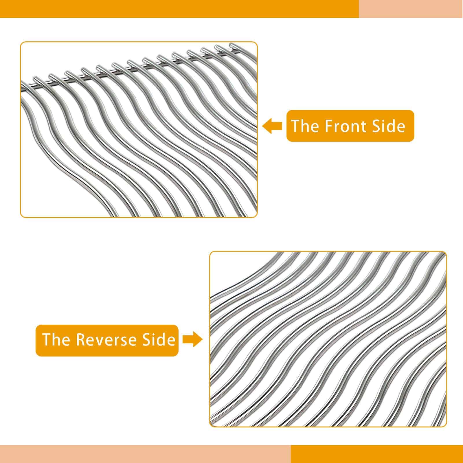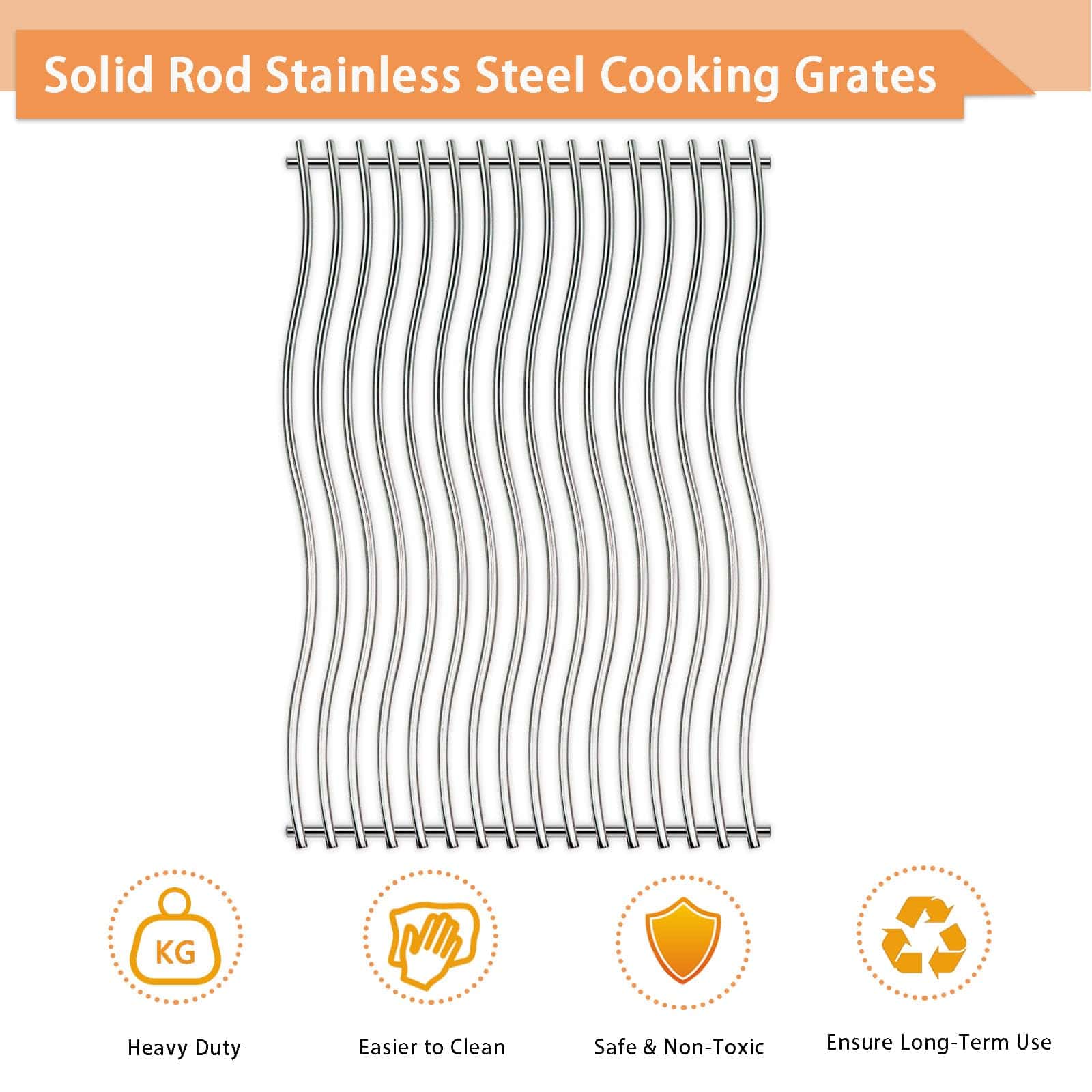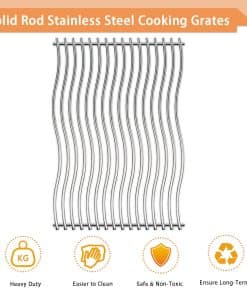 Rejillas de Parrilla de Cocina de Acero Inoxidable Zemibi S8C011 para Modelos de Parrilla de Gas Napoleon Prestige PRO 500, Rejillas de Parrilla de Varillas Sólidas, 17 3/4″ x 27 1/2″, Juego de 2. Extremadamente duradero: las rejillas para parrilla están hechas de acero inoxidable, varilla sólida de 7 mm de diámetro, bien diseñadas y construidas para durar. Robusto con una buena distribución del calor. Antiadherente – Puede mantener las rejillas para parrilla de acero inoxidable sazonadas (aceitadas después de cada uso), el revestimiento antiadherente ayuda a cocinar de forma hermosa y agregar un sabor ahumado. TENGA EN CUENTA: la marca y los modelos son solo de referencia, mida el tamaño antes de comprar.