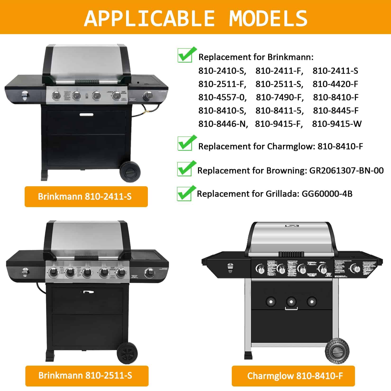 Reemplazos de alta calidad para parrillas Brinkmann, Browning, Charmglow y Grillada. Hechas de hierro fundido para retener el calor de manera excelente. Resistentes, antiadherentes, duraderas y fáciles de limpiar. Compatible con varios modelos, por favor verifique las dimensiones antes de realizar su compra.