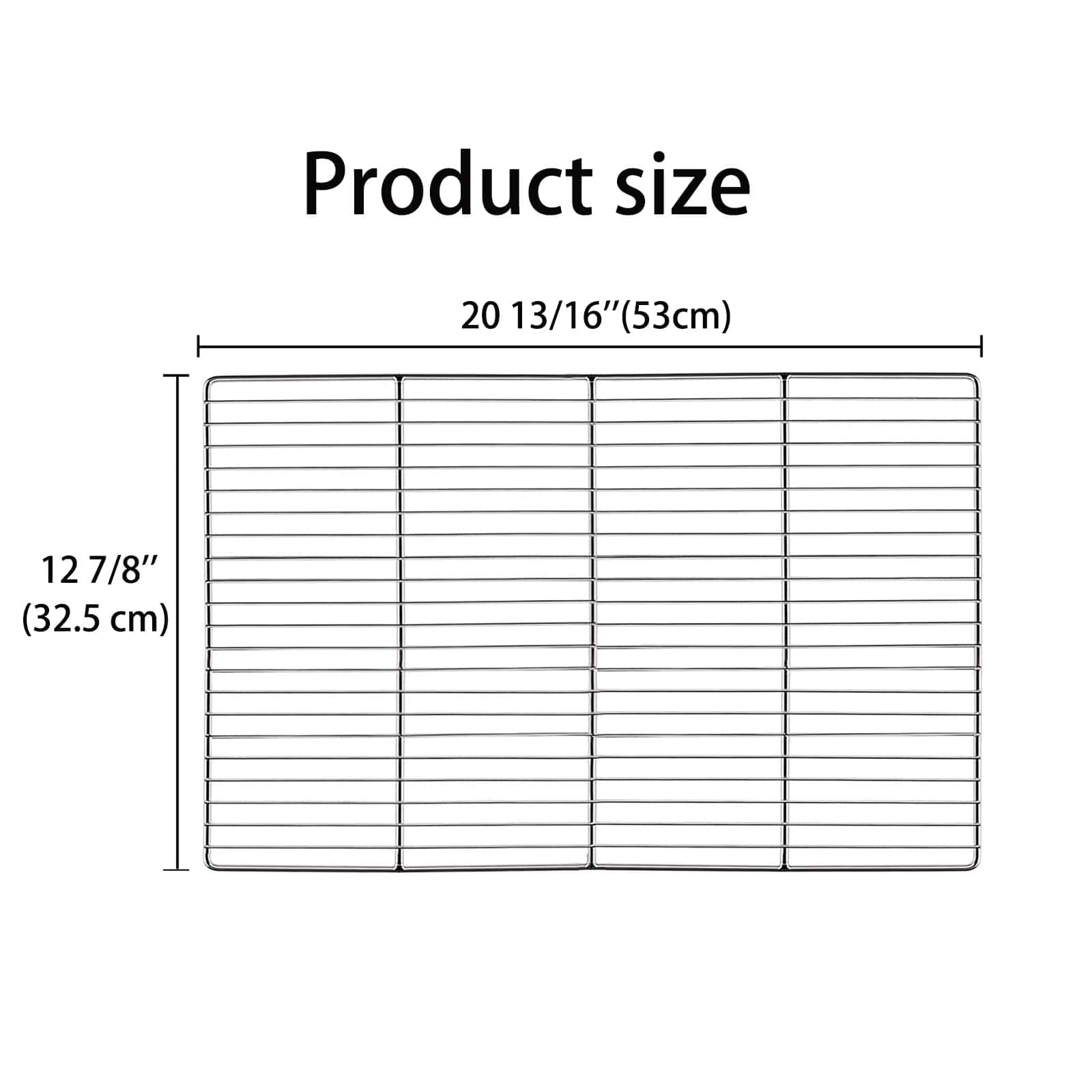 2. Dimensiones: La dimensión de cada rejilla de parrilla de acero inoxidable es de 20 13/16» 12 7/8», que está hecha de 4 mm y 2 mm, el espaciado entre las varillas es de 160 mm. Hay cuatro tamaños en esta serie, así que presta especial atención al tamaño antes de comprar y elige el tamaño más adecuado.