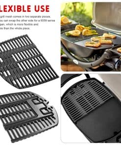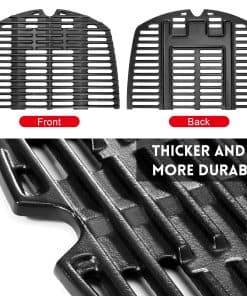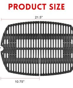 Rejillas de Parrilla Weber – Rejillas de Cocina de Hierro Fundido para Weber Q200 Q220 Q2000 Q2400 Q260 Parrillas de Gas, 15.3″ x 21.5″, 2 Piezas Repuesto. Perfectamente para la serie Weber Q200. Se adapta a las parrillas Weber Q200, Q220, Q2000, Q2200, Q2400. Se ajusta perfectamente a los modelos Weber 396000, 396001, 566001, 566002, 566014. Repuesto para Weber 7645, 7583. Dimensiones y Paquete 10.75″L x 15.3″W para cada una, 21.5″L x 15.3″W para 2 piezas. Paquete: viene con 2 rejillas de parrilla, NO incluye los clips (soporte partidos). Calidad Superior Rejillas de parrilla 7645 7583 de hierro fundido esmaltado mate, duraderas y resistentes. Calienta rápido y de manera uniforme y tiene buena retención de calor. Las rejillas de parrilla pueden dejar hermosas marcas de parrilla en su comida, permitiéndole tener una experiencia de parrilla de chef en cualquier momento y lugar. Super partes para parrillas Weber Q si desea actualizar su parrilla de cocción, esta rejilla de rejilla es la excelente pieza de repuesto para extender la vida útil de su parrilla, no necesita reemplazar una parrilla nueva completa, solo reemplace esta pieza en ella, luego podrá cocinar una deliciosa comida. Consejos: por favor verifique el tamaño de su pieza original antes de realizar el pedido y compárelo con la pieza de repuesto para asegurar un ajuste perfecto. Reemplazos posventa Por favor, verifique y compare las dimensiones con sus piezas originales antes de realizar el pedido. Si está buscando mejorar su experiencia de parrilla, estas rejillas de parrilla de hierro fundido son la elección perfecta para usted. Con una construcción duradera y una capacidad excepcional de retención de calor, no se arrepentirá de invertir en estas rejillas de parrilla de alta calidad para su parrilla Weber Q. ¡No espere más y obtenga las suyas hoy mismo!