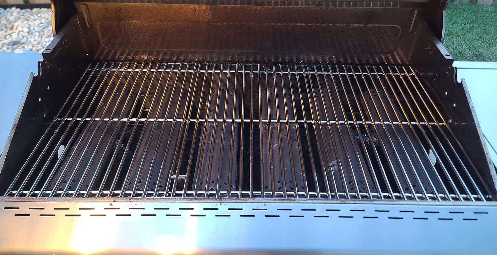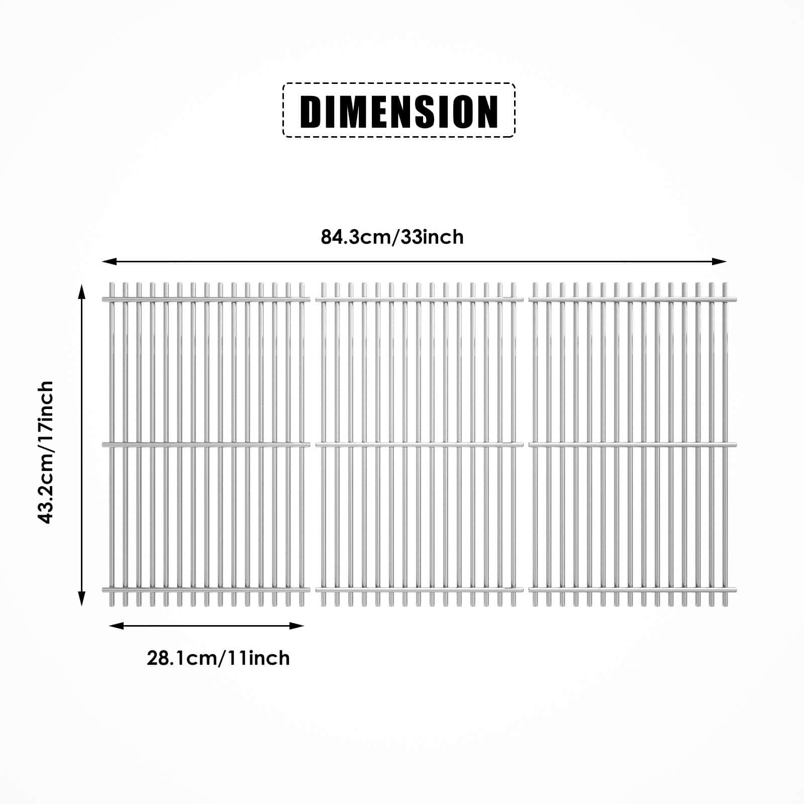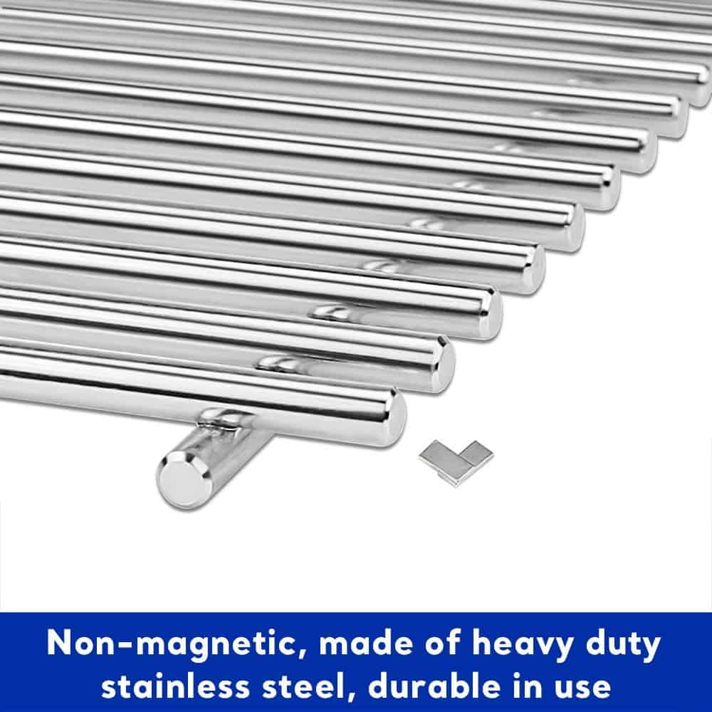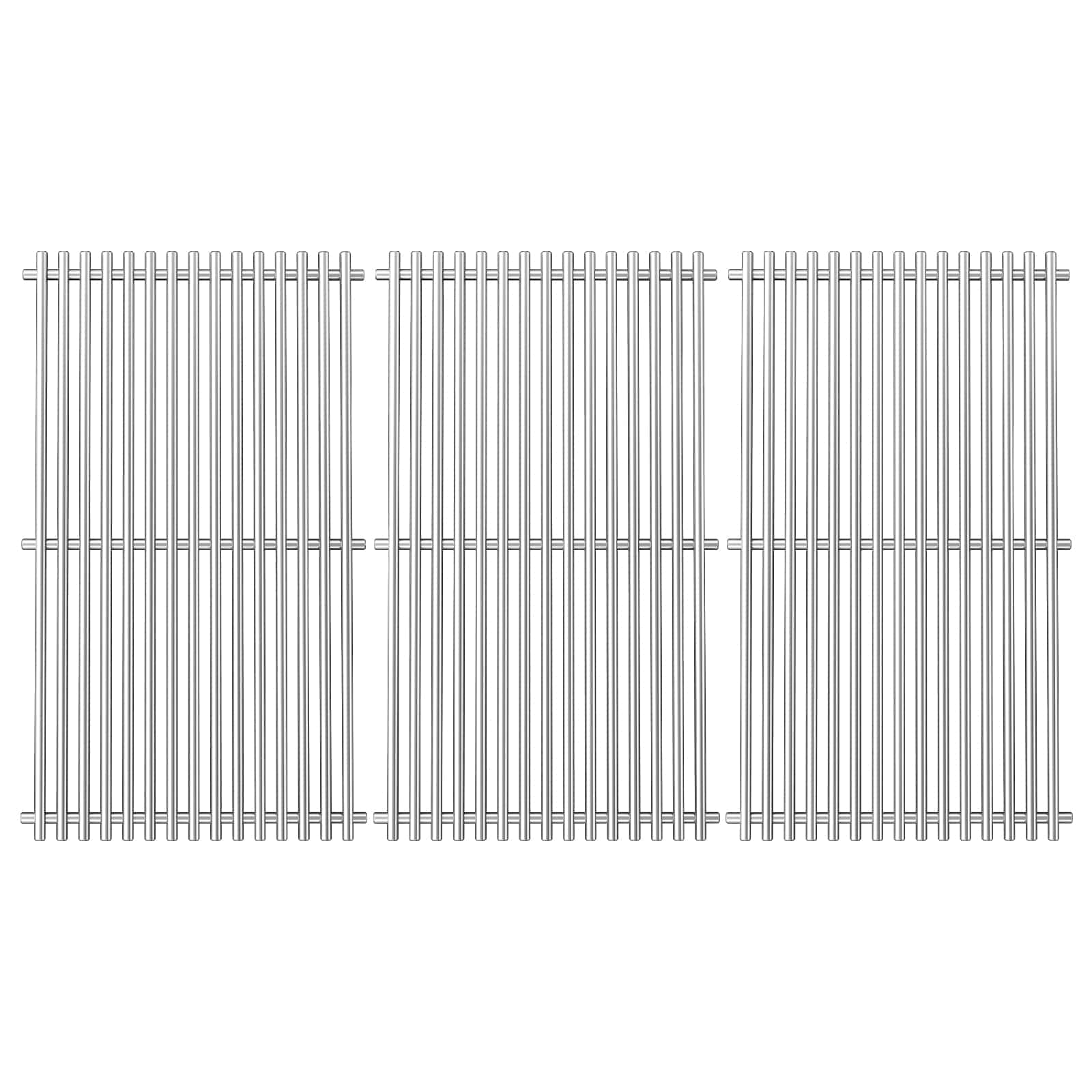 Rejillas para Parrilla de 17 pulgadas 720 0896b para Nexgrill 6 Quemadores 720-0896B 720-0898 720-0896X 720-0896E, Rejillas de Cocción de Hierro Fundido para Nexgrill 6-Burner Deluxe 720-0896B Repuesto para Parrilla. Este juego premium de rejillas de acero inoxidable está diseñado a medida para los modelos de 6 quemadores Nexgrill, incluyendo 720-0896, 720-0896B, 720-0896C, 720-0896E, 720-0896CP, 720-0898, 720-0898A, y más. También compatible con los modelos Evolution de Nexgrill Deluxe 6 Burner como 730-0896, 730-0898, y Smoke Hollow SH3618CW. Actualice su juego de parrillas para reemplazo de 6 quemadores Nexgrill fabricadas con acero inoxidable de alta calidad y no magnético. Estas rejillas no se astillarán, descascararán ni oxidarán como los modelos esmaltados o de hierro fundido. Construidas para cocinar a altas temperaturas, retienen y irradian calor de forma uniforme, sellando la carne de forma hermosa y atrapando ese jugoso y ahumado sabor que todo maestro parrillero anhela. Además, el acabado cepillado elegante le da a su parrilla un aspecto moderno y limpio que dura temporada tras temporada. Ya sea que esté restaurando su parrilla de patio trasero o reemplazando piezas desgastadas, este conjunto devuelve la vida a su parrilla con un ajuste perfecto sin movimientos, sin conjeturas. Tamaño Generoso y Distribución de Calor Uniforme. Cada rejilla mide 17 x 11 1/8, totalizando 17 x 33 3/8 para el conjunto completo de 3 piezas ideal para reuniones familiares, barbacoas de fin de semana y uso diario. Estas rejillas de parrilla de gourmet al aire libre para 6 quemadores proporcionan una superficie de cocción estable y un amplio espacio para bistecs, hamburguesas, verduras y más. Los espacios de precisión evitan que los alimentos pequeños se caigan mientras aseguran que el calor circule uniformemente para una cocción consistente. Diseño Seguro y Limpieza sin Esfuerzo. Olvídese de los bordes afilados: estas rejillas cuentan con bordes suavizados y redondeados para un agarre seguro al instalar o limpiar. En comparación con el hierro fundido, el diseño de acero inoxidable es naturalmente resistente a que los alimentos se peguen, lo que hace que la limpieza sea muy sencilla. Simplemente cepille los residuos con agua tibia y jabón, enjuague, seque y estará listo para usar. Estas piezas para 6 quemadores Nexgrill de lujo son perfectas para los parrilleros que buscan un rendimiento excepcional con un mínimo de complicaciones. Empaque Seguro. Ideal para Regalar o Almacenar. Viene empaquetado en una caja reforzada a prueba de daños que garantiza una entrega segura, ya sea a su puerta o como regalo para un amante del BBQ. Una actualización ideal para cualquier persona que necesite repuestos de parrilla a gas Nexgrill Deluxe de 6 quemadores que ofrecen rendimiento y longevidad. Asegúrese de medir sus rejillas originales antes de ordenar para garantizar un ajuste perfecto: estamos aquí para ayudarlo a parrillar mejor, más rápido y de manera más segura. Compatible con parrillas de gas Nexgrill 720-0869CG 720-0896CA 730-0898A 720-0898A 720-0896CA 730-0896CA 720-0896BK, 720-0896C.