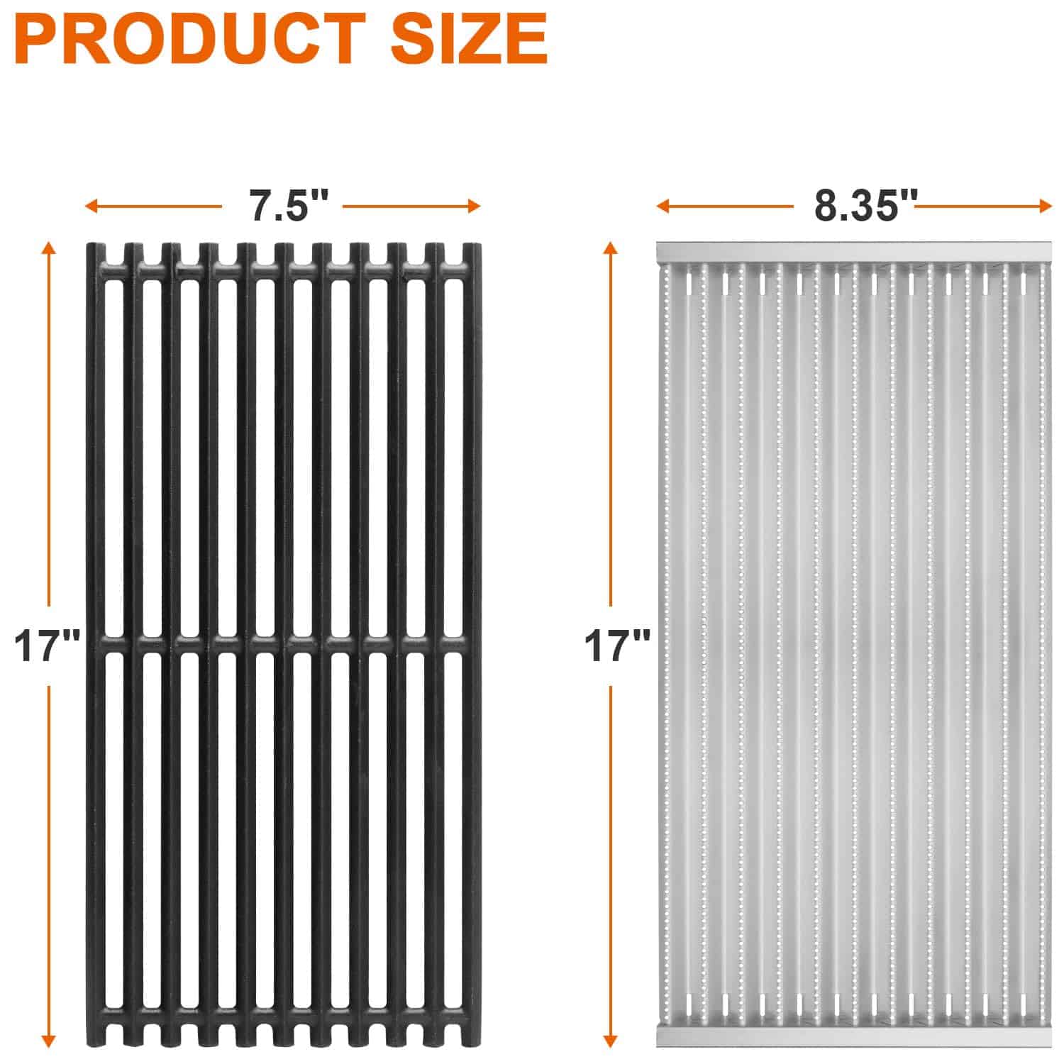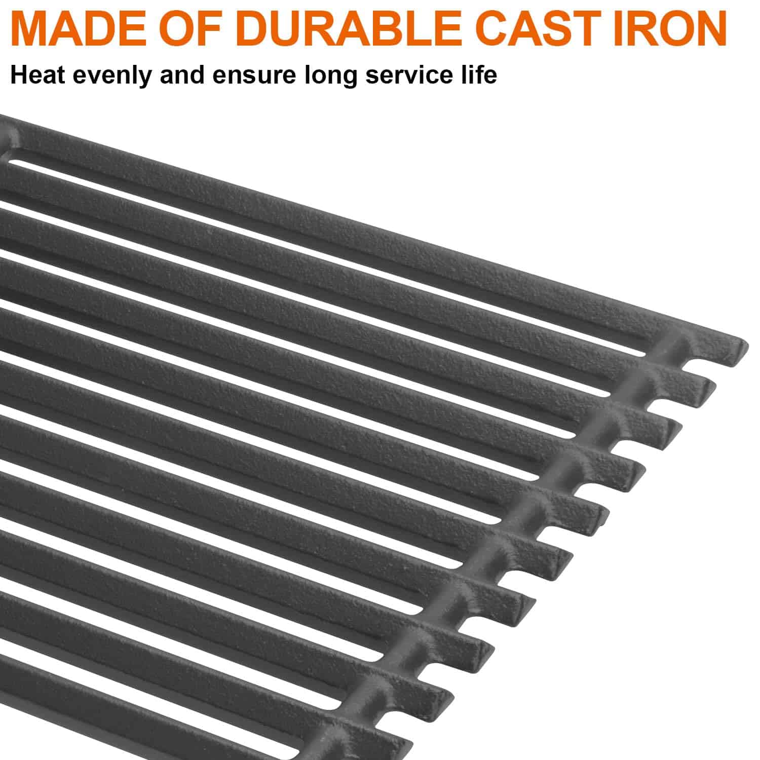 Rejillas de hierro fundido hechas de hierro fundido resistente. Calientan de manera uniforme y fáciles de instalar. Prolonga la vida útil de tu parrilla. Reemplazo para piezas de rejillas de parrilla charbroil G47C4-0017-W1 G466-0025-W1A.