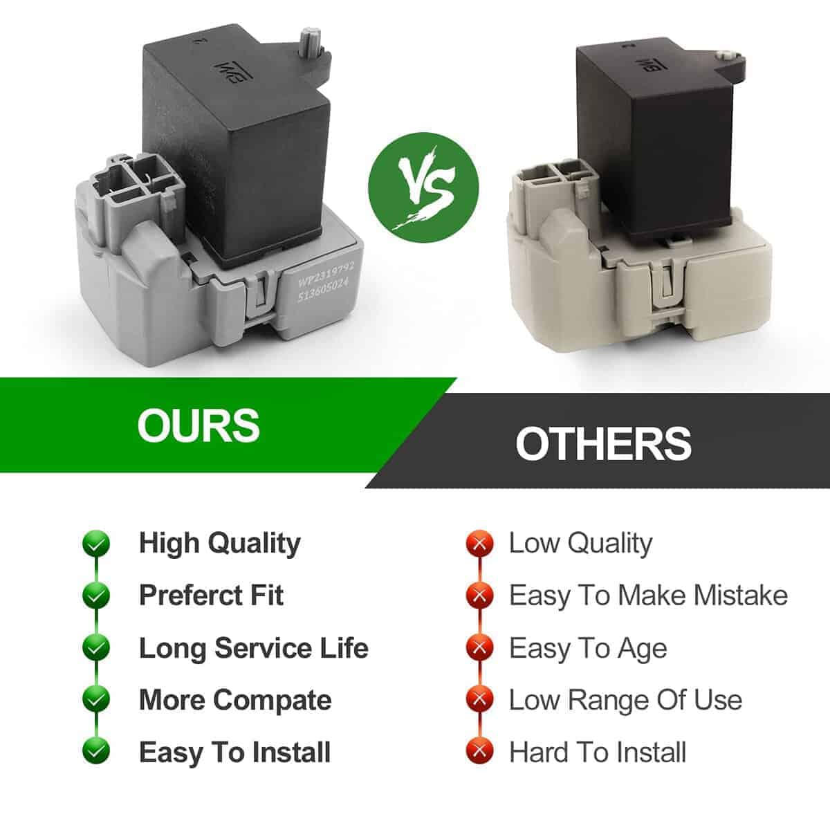 3. NÚMERO DE PARTE DE REPUESTO: Compatible con refrigeradores y congeladores kenmore, whirlpool, amana, may-tag, magic chef, admiral, norge, roper, kitchen-aid. Sustituye a W10197427, 2319793, 4357156, 2255554, 10097201, 14200214, 14203585, 1481748, 18516-3, 4344041, 61002047, 61002971, 65529-1, 68001457, 68001622, AH2348569, EA2348569, W2319792, W10448878, 297237702, WR07X10097, WR08X21100, W10448874, 2312074, 241941005, 241941004, 2319792, WPW1089190, etc.