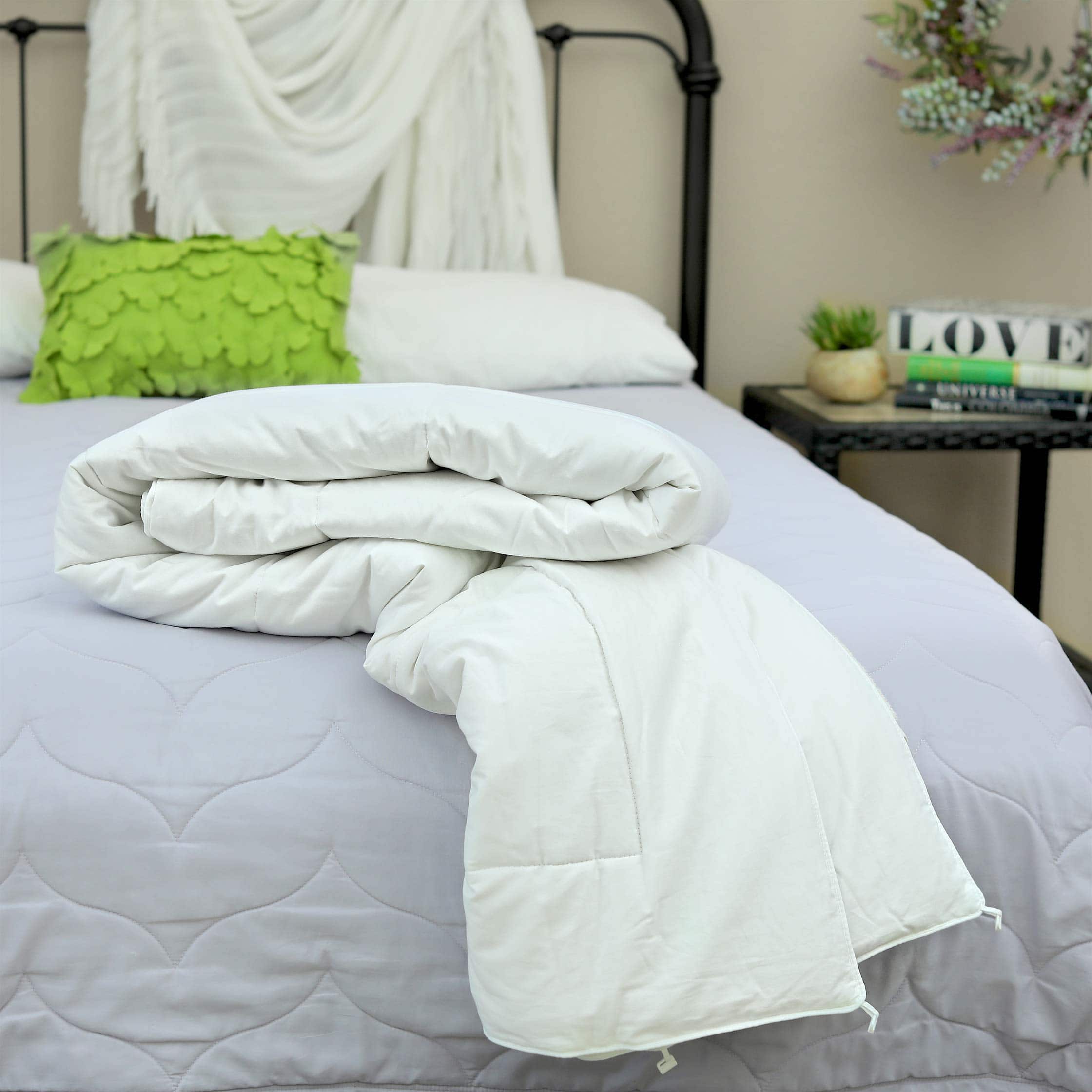 INDULGE IN CLEANLINESS AND COMFORT EVERY NIGHT: Transform your sleep sanctuary with our Top Quality Natural Mulberry Silk Blended with Synthetic Silk Microfiber Duvet Insert. A nightly embrace meticulously crafted for Your Comfort. Created with a finest Cotton Sateen casing that allows all the goodness of the mulberry silk to seep through, a lasting luxury that cradles you night after night. Immerse yourself in the unparalleled goodness of silk, in European-style duvet elegance (Use with a Duvet Cover – not supplied). ELEVATE YOUR WELL-BEING AND BEAUTY ROUTINE: Embark on a holistic health and beauty journey. Experience the pinnacle of cleanliness and hygiene and welcome the anti-aging wonders of pure Mulberry Silk. Enriched with the natural protein sericin and amino acids, the Mulberry Silk in this bedding pampers your skin and nourishes and protects your hair. Recommended for asthma, allergies, and eczema too, it’s more than just bedding it’s a wellness and beauty sanctuary. FEEL THE SILK SENSATION WITH THE INSPECTION ZIP: Each duvet is a masterpiece, complete with a discrete inspection zip, where you can see and feel the silky soft interior. Maintenance is a breeze, simply machine wash at low temperature. Use a Mild Detergent to Spot Clean. Relish the freshness of a clean bed and make bedtime a daily rejuvenating ritual. CERTIFICATION: All Duvets are Checked to OEKO-TEX Standard 100 and are Complete with the OEKO «Confidence in Textiles» Quality Label. GUARANTEE: Full Money-Back Guarantee. Return for Any Reason. Indulge in comfort with total confidence. EXCLUSIVE FOR YOU: Secure your Duvet Insert now and receive a high-quality carry and store case as our special extra for you. ADDITIONAL OPTION: Elevate your experience by pairing it with the Summer Warmth version (available for purchase separately) to transform your Spring/Fall warmth duvet into a snug Winter Duvet. Three choices of duvet warmth using just two duvets.