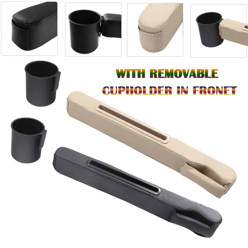 2. Portavasos extraíble Este relleno de espacio del asiento del automóvil viene con un portavasos extraíble para sostener y asegurar bebidas mientras se conduce, generalmente tazas o botellas, proporcionando una forma conveniente y segura para que conductores y pasajeros mantengan las bebidas al alcance fácil sin riesgo de derrames.