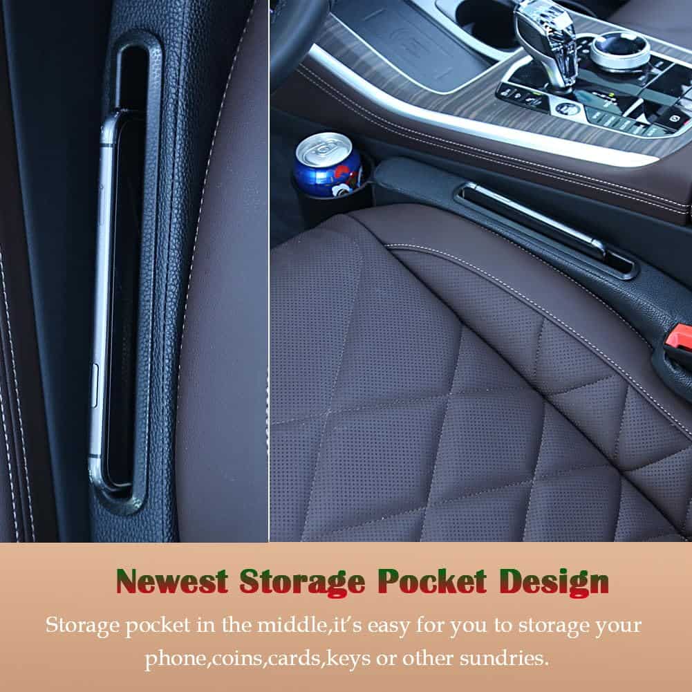 1. Organizador de bolsillo Este relleno de espacio del asiento viene con un bolsillo adicional, no solo cierra el espacio para evitar que los objetos se caigan, sino que también ofrece soluciones de almacenamiento convenientes para varios objetos pequeños como teléfonos inteligentes, llaves, monedas, bolígrafos, tarjetas, lo cual es esencial para mantener el interior del automóvil limpio.