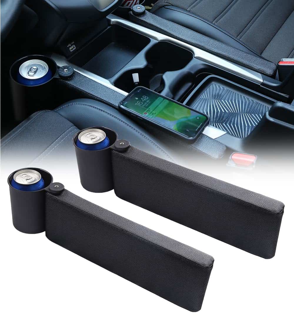 Este relleno para espacio de asiento de coche cuenta con una increíble función 2 en 1: es un relleno para el hueco del asiento y a la vez es un portavasos con capacidad para un vaso cuyo diámetro no exceda las 3,3 pulgadas. Además, el portavasos puede almacenar pequeños objetos como monedas, llaves, tarjetas, entre otros. Esto lo convierte en un accesorio versátil y práctico para su automóvil.