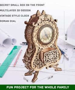 El reloj no solo nos ayuda a vivir en el aquí y ahora, sino que también puede recordarnos el pasado… La moda del siglo XXI está trayendo gradualmente de vuelta los elementos de la era victoriana, que se están volviendo cada vez más relevantes e interesantes, tanto desde un punto de vista artístico como cultural. ¡Nos enorgullece presentarles un exclusivo kit de modelo de madera de Wood Trick – ¡Reloj Vintage de Mesa! Este modelo de bricolaje de colección-será un elemento decorativo clave y marcará el estilo interior de la habitación. El kit de reloj de madera para adultos y niños está hecho en el espíritu de los siglos XIX-XX con el uso de materiales de alta calidad, cumplimiento con todas las técnicas y técnicas de fabricación, típicas del estilo vintage. El kit de reloj de madera está hecho de materiales ecológicos de alta resistencia, equipado con un movimiento suave y agujas de alta clase. Un punto culminante único de este kit de reloj mecánico es un compartimento de almacenamiento oculto, que le servirá como un gran lugar para guardar joyas y otros artículos preciosos. El puzzle 3D de reloj Vintage de Wood Trick es una solución perfecta para revivir la oficina – creando una atmósfera representativa – y atraer la atención de los invitados en la cocina o sala de estar. Además, es una gran oportunidad para construir tu propio puzzle de reloj de madera en familia y enseñar a los niños cómo leer la hora. ¡Siéntete libre de experimentar con tu entorno, y todo a tu alrededor brillará con colores frescos!