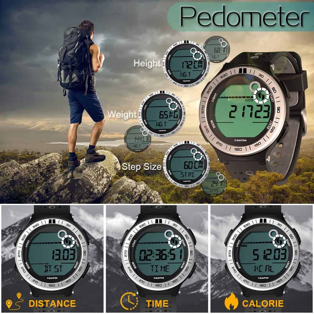 -Nivel de resistencia al agua de hasta 10 ATM, que puede funcionar normalmente a una profundidad de 100 metros (330 pies) bajo el agua. Adecuado para usar en actividades acuáticas como natación, buceo, snorkel, surf, remo, esquí acuático, así como para usar en la vida diaria y deportes al aire libre como correr, hacer senderismo, escalar, andar en bicicleta, etc.