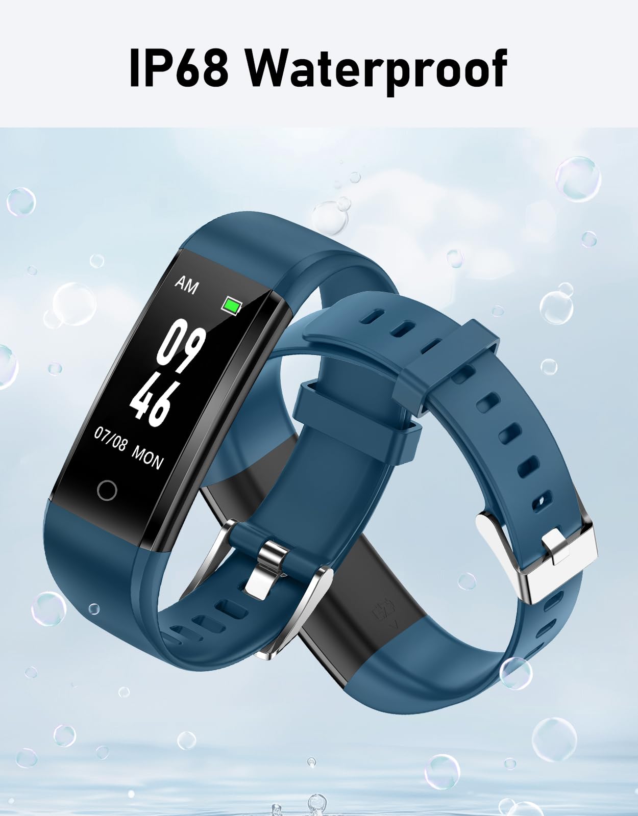 5. Rastreador de Pasos Resistente al Agua- Clasificado como resistente al agua IP68, permitiéndote usarlo mientras te lavas las manos sin preocupaciones.