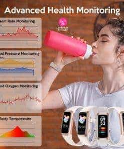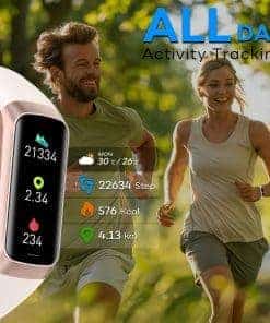 4. Asistente de vida convenienteEl diseño multifuncional del reloj rastreador de fitness para hombres y mujeres te proporciona una pantalla de estado en tiempo real, recordatorio de sedentarismo, recordatorio de beber agua, control remoto de cámara, despertador y clima. La pantalla a color HD viene con tres opciones de estilo de pantalla principal diferentes. Y las opciones de formato de tiempo de 12 horas o 24 horas, opciones de temperatura en C o F y control táctil conveniente son más fáciles de usar.