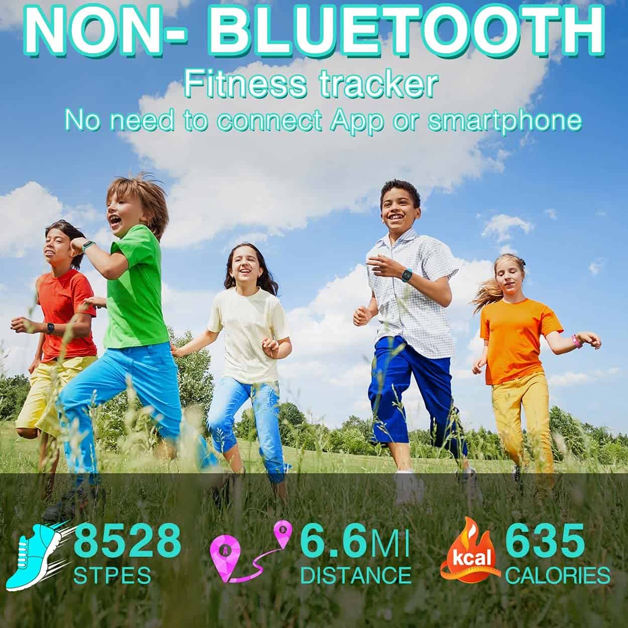 2. SEGUIMIENTO DE ACTIVIDAD SIN BLUETOOTH: NO es necesario conectar el teléfono inteligente ni descargar una aplicación. Realiza un seguimiento automático de los pasos, la distancia y las calorías quemadas de los niños.