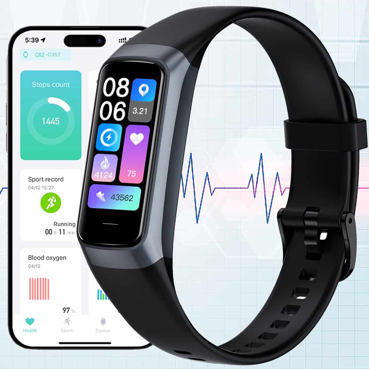 Reloj Smart Fitness Tracker, Smart Watch con Monitor de Presión Arterial Frecuencia Cardíaca Sueño IP67 Impermeable Reloj de Salud Fitness Activity Tracker Podómetro Contador de Pasos para Hombres Mujeres Android iOS Teléfono. El reloj de actividad y rastreador de fitness incluye monitor de presión arterial/frecuencia cardíaca/oxygeno/temperatura corporal y monitor de sueño. Puedes consultar estas métricas de salud en tiempo real y datos de sueño(daily, weekly and monthly) convenientemente en la aplicación KeepHealth. Puedes activar el seguimiento de la frecuencia cardíaca durante 24 horas, oxígeno y temperatura en momentos fijos en la App. El reloj rastreador de actividad y pasos rastrea la actividad durante todo el día, incluidos pasos, distancia y calorías quemadas para ayudarte a alcanzar tus objetivos de fitness de manera más eficiente. Puede seguir 25 modos deportivos como correr, andar en bicicleta, saltar y más para la frecuencia cardíaca en tiempo real, pasos, distancia, calorías quemadas, tiempo de duración. Puedes obtener un mapa de la ruta de tu entrenamiento y ritmo en la aplicación durante la actividad al aire libre conectándolo al GPS de tu teléfono. Recibe una notificación vibrante en tu muñeca para llamadas entrantes, mensajes de texto y de aplicación, incluyendo Facebook, Instagram, Twitter, TikTok, WhatsApp, Messenger y más. Para las llamadas entrantes, puedes verificar el nombre del llamante o el número de teléfono en el reloj inteligente para hombres y mujeres para decidir si necesitas alcanzar tu teléfono para contestar la llamada. Para mensajes de texto y de aplicación, también puedes leer los mensajes en tu reloj directamente. El diseño multifuncional del reloj rastreador de fitness para hombres y mujeres te brinda una pantalla de estado en tiempo real, recordatorio de sedentarismo, recordatorio de beber agua, control remoto de la cámara, reloj despertador, clima. La pantalla en color HD viene con tres opciones de estilo de pantalla principal diferentes. Y opciones de formato de tiempo de 12 horas o 24 horas, opciones de temperatura C o F y un control táctil conveniente son más fáciles de usar. Controles con un clic, hacen que este reloj de actividad rastreador de fitness sea más conveniente y simple, y la pantalla de alta definición es más moderna. Varias opciones de diales para elegir en la aplicación, también puedes personalizar la cara del reloj con fotos de tu propio álbum.