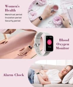 El reloj de fitness SHANG WING LYNN2 puede detectar y analizar tu Ritmo Cardíaco las 24 horas, Saturación de Oxígeno en Sangre y Duración/Calidad del Sueño, así como registrar el Período Menstrual Femenino. Te ayudará a construir un estilo de vida más saludable y activo. Este reloj rastreador de fitness tiene 24 modos deportivos integrados, lo que te permite obtener datos en tiempo real para tus deportes favoritos, como caminar, correr, hacer yoga, ciclismo, etc. Puede cumplir bien con tus necesidades deportivas diarias. Este reloj de fitness también seguirá tus datos diarios de actividad, incluyendo pasos, distancia, calorías quemadas. Registra tus datos de salud en tu muñeca. Este smartwatch tiene una larga duración de la batería que puede soportar un uso normal de 7 días. Se tarda aproximadamente 2.5 horas en cargarse por completo. Y su tiempo de espera puede durar 30 días. El smartwatch LYNN2 es compatible con Teléfonos Inteligentes iOS 9.0/Android 6.0 o superior. Vibrará para recordarte una vez que haya llamadas entrantes, mensajes de texto, notificaciones de redes sociales, etc. Aporta más comodidad a tu vida diaria y trabajo. El reloj rastreador de fitness LYNN2 está diseñado con nivel de resistencia al agua IP68, que puede satisfacer tu uso diario e incluso puede ser usado mientras nadas. También cuenta con muchas herramientas prácticas como alarmas, pronóstico del tiempo, entrenamiento de respiración, control de música, cronómetro, encontrar tu teléfono, interruptor de no molestar, etc.