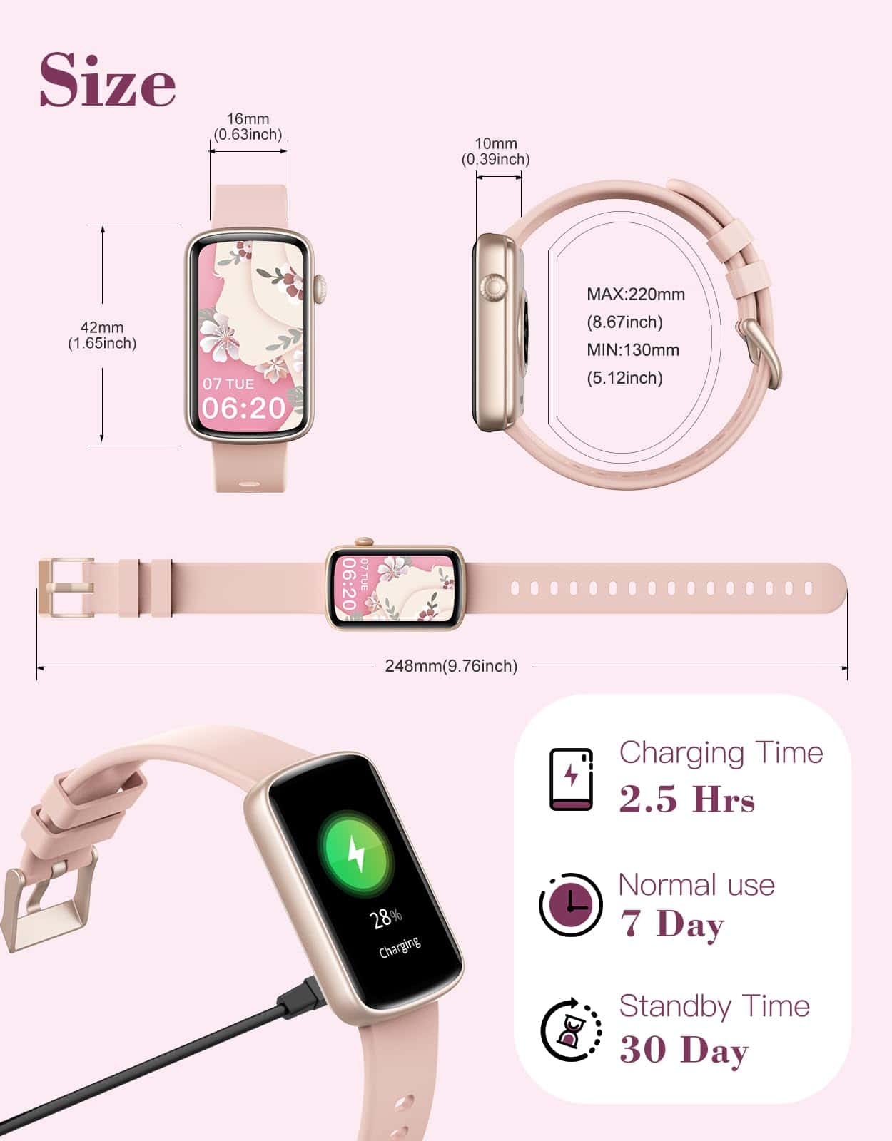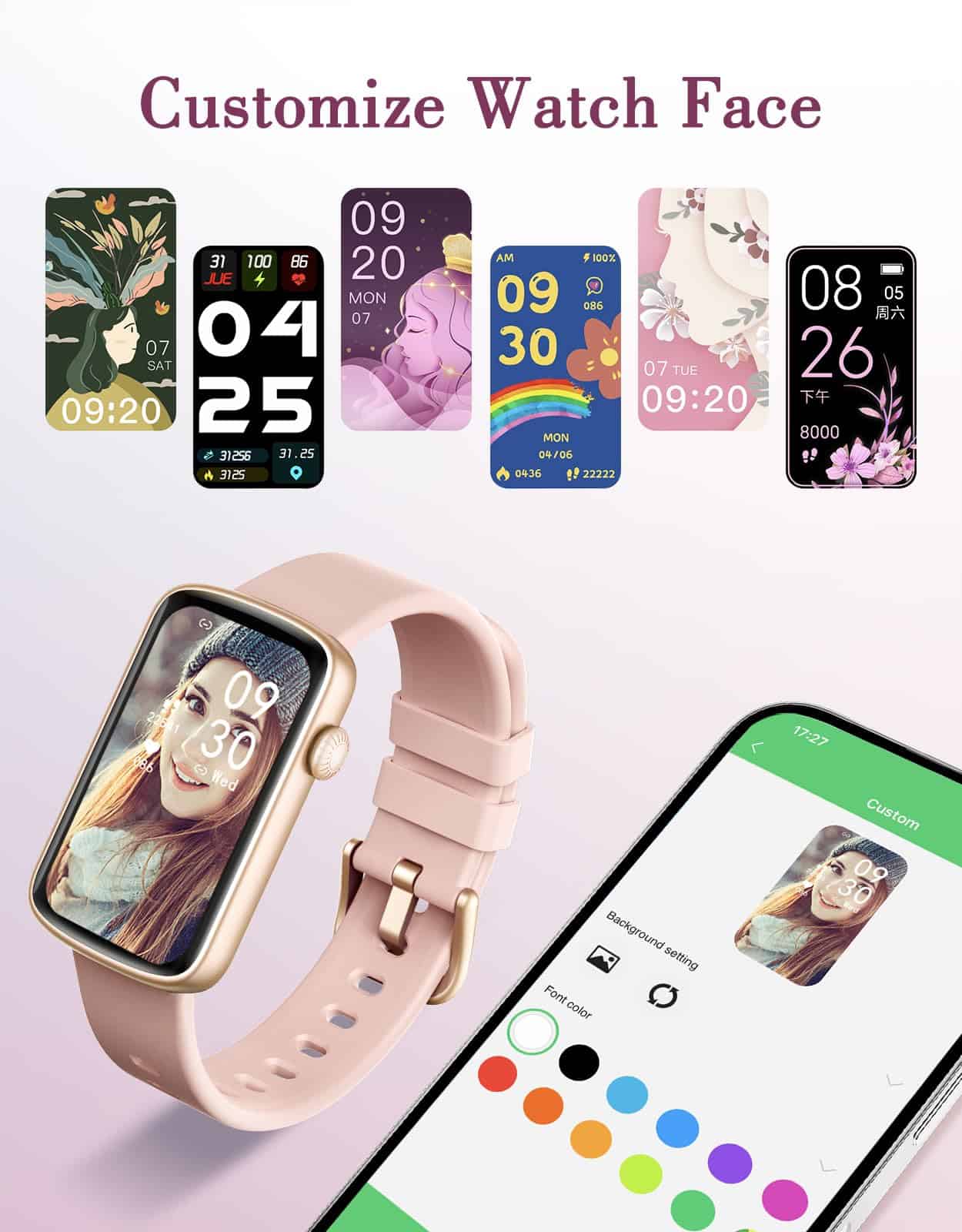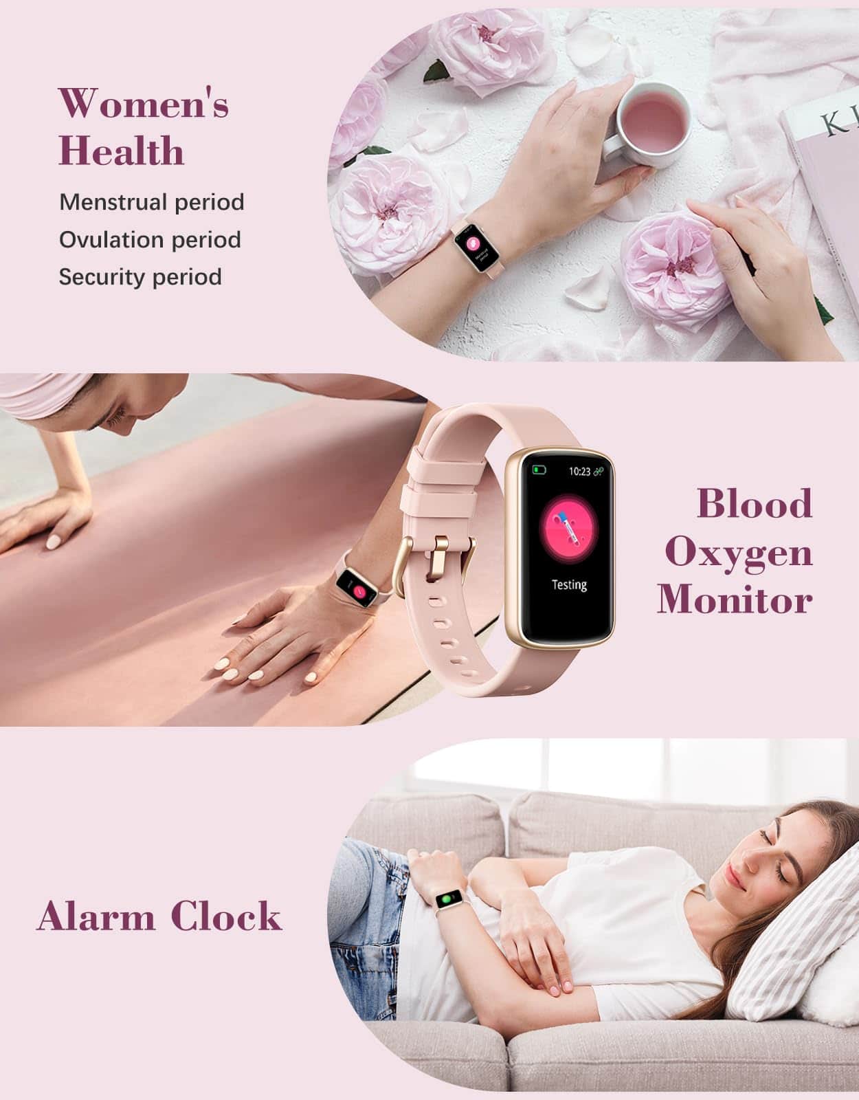 Los relojes deportivos SHANG WING LYNN2 son el regalo perfecto para mujeres. Este reloj inteligente se destaca por su diseño delgado y elegante, con una pantalla táctil a color TFT de 1,47 pulgadas que proporciona una experiencia visual suave. Personaliza tu estilo con las múltiples caras de reloj disponibles en la aplicación GloryFit, o crea tus propias esferas únicas con tus fotos. Monitoriza tu ritmo cardíaco, saturación de oxígeno en sangre y calidad/duración del sueño las 24 horas, además de grabar el periodo menstrual femenino. Este rastreador de fitness cuenta con 24 modos de deporte integrados, lo que te permite obtener datos en tiempo real de tus actividades favoritas como caminar, correr, yoga, ciclismo, entre otros. La batería de larga duración de este reloj inteligente puede soportar 7 días de uso normal y su tiempo de espera puede llegar a los 30 días. Compatible con teléfonos inteligentes iOS 9.0/Android 6.0 o superior, este reloj inteligente vibrará para recordarte las llamadas entrantes, mensajes de texto, notificaciones de redes sociales, etc. Sumérgete en la comodidad diaria con funciones como alarma, pronóstico del tiempo, control de música, cronómetro, encontrar tu teléfono, entre otras. Diseñado con nivel de resistencia al agua IP68, este rastreador de fitness puede ajustarse a tus necesidades diarias e incluso ser usado mientras nadas.