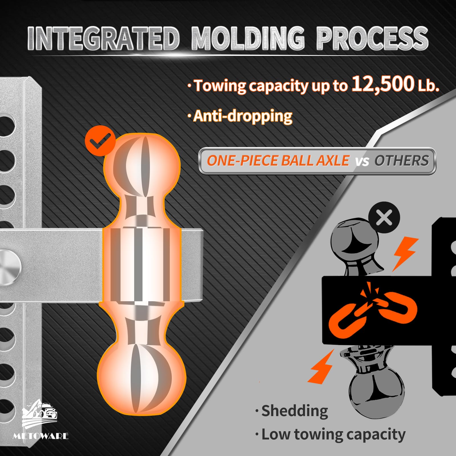 2. CAPACIDAD DE REMOLQUE POTENTE – Las bolas de enganche integradas permiten una capacidad de remolque suprema. La bola de enganche de 2″ tiene una capacidad de remolque de 8,000 lbs, mientras que la bola de enganche de 2-5/16″ ofrece una capacidad de remolque líder en la industria de 12,500lbs, por lo que puede remolcar cargas más pesadas como camiones de servicio pesado o casas rodantes para el trabajo diario.