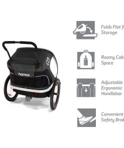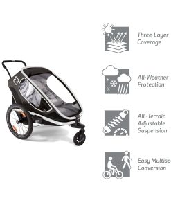 El remolque para bicicleta Outback de Hamax es el compañero ideal para todas tus aventuras en familia. Su suspensión todoterreno ajustable garantiza un paseo suave en cualquier terreno, sin necesidad de herramientas. Su diseño aerodinámico proporciona una estabilidad incomparable. Los asientos reclinables premium ofrecen 3 posiciones de reclinación, acolchado contorneado y reposacabezas ajustables. Los tejidos son desmontables para una limpieza fácil. El amplio espacio interior y el compartimento de carga XL ofrecen mucho espacio para pasajeros, cascos y objetos personales. Las ruedas de liberación rápida hacen que plegarlo sea muy sencillo para guardarlo o transportarlo. Con tejidos de poliéster impermeable 600D y Cubierta de Tres Capas con pantalla de malla, cubierta transparente para la lluvia y parasol, el Outback es capaz de afrontar cualquier aventura en cualquier estación del año.