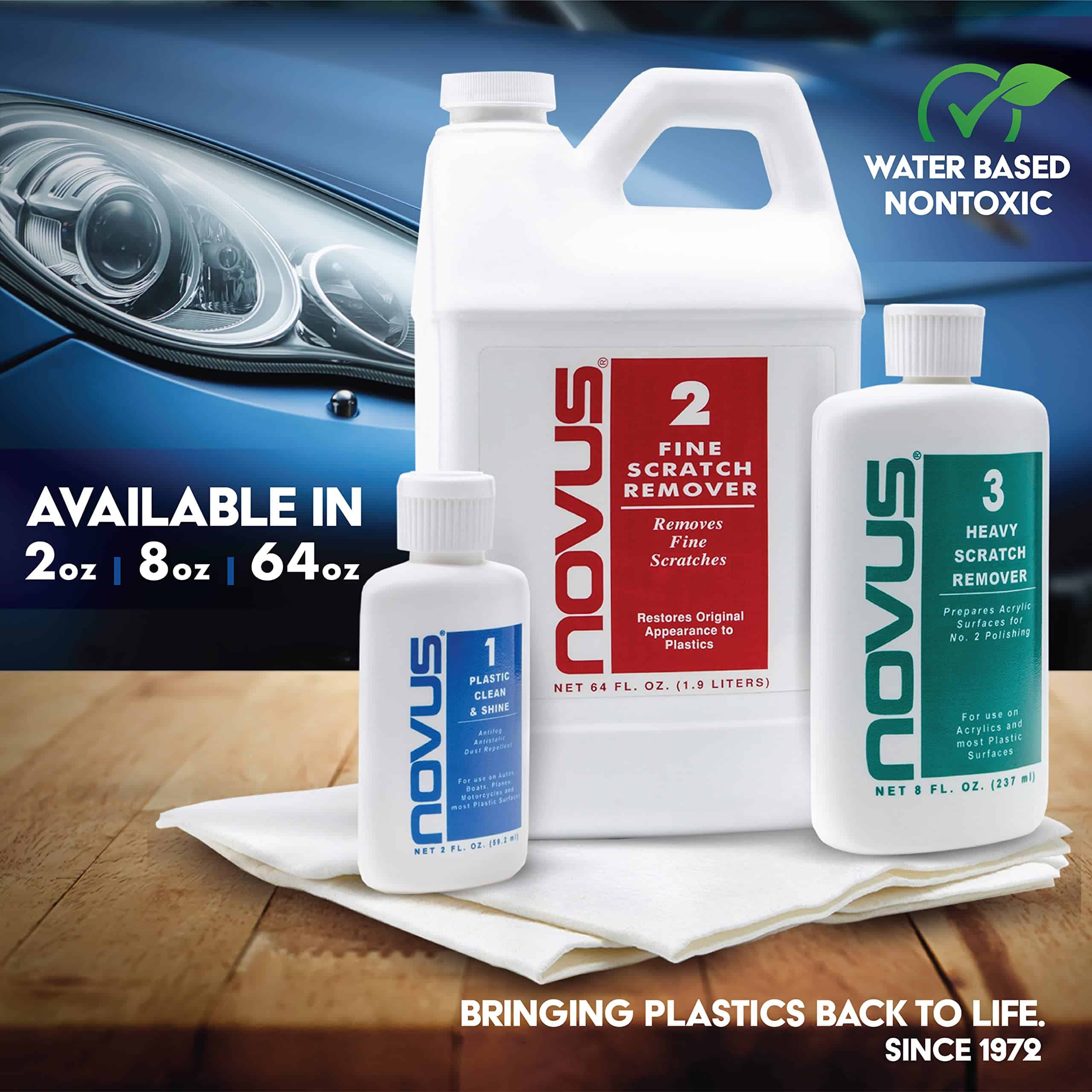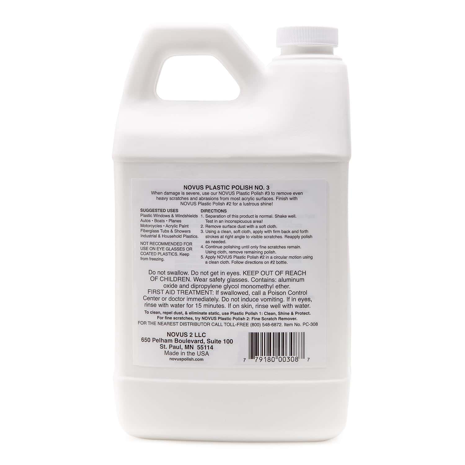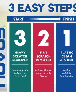 Elimina arañazos y abrasiones pesados de la mayoría de superficies acrílicas. Úsalo cuando el daño sea demasiado severo para ser restaurado con NOVUS no. 2. Requiere el uso de NOVUS no. 2 para el acabado final. No recomendado para uso en plásticos recubiertos.