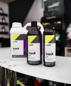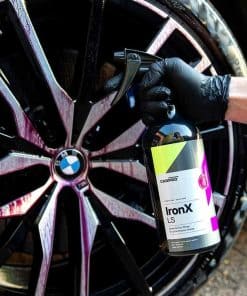 Removedor de Hierro CARPRO IronX con aroma a limón es una fórmula de calidad superior diseñada para eliminar de manera efectiva las partículas de hierro y prevenir el daño asociado con el óxido. Con un nuevo aroma a limón, esta fórmula es un 10% más potente, lo que la hace ideal para detener las manchas de óxido y el fallo prematuro del recubrimiento transparente de su vehículo. Además, IronX es un producto seguro para todas las superficies, ya que es libre de ácidos y pH neutro. Neutraliza las reacciones que causan el óxido y el fallo de la pintura, provenientes del polvo caliente de los frenos y otros compuestos químicos en el aire que contienen hierro. Este removedor de hierro es efectivo en cualquier tipo de ruedas, pinturas brillantes, acabados de barniz, metales pulidos, cromo y cristal. Utilizado y preferido por profesionales y entusiastas del automóvil en todo el mundo, CARPRO IronX es la elección confiable para proteger y prolongar el recubrimiento y la pintura de su vehículo.