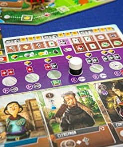 Viscounts of the West Kingdom. El reinado del Rey está declinando. Es circa 980 d.C. Eligiendo la paz por encima de la prosperidad, nuestro una vez fuerte Rey comenzó a ofrecer oro y tierras a nuestros enemigos para que bajaran sus hachas. Pero la paz es un asunto tenso. La pobreza se propaga y la gente pierde fe en la corona. Lealtades Cambiantes. Como viscounts, debemos ser sabios y decisivos. La lealtad debe ser mantenida pero ganar el favor de la gente debe ser nuestra prioridad, en caso de un cambio repentino de poder. Resumen del juego: Rondas. Viscounts of the West Kingdom se juega a lo largo de una serie indeterminada de Rondas. Cada Ronda consiste en que cada jugador tome 1 turno, seguido por el jugador a su izquierda, y así sucesivamente. Todos los Puntos de Victoria se calcularán al final del juego. Fase Uno – Gestión de Cartas. Los jugadores administrarán una línea cambiante de Cartas de Habitantes en sus Tableros de Jugador. Estas cartas proporcionarán a los jugadores Iconos, útiles para llevar a cabo las 4 acciones principales. Fase Dos – Movimiento. Los jugadores moverán su Viscount en sentido horario alrededor del Tablero Principal. La distancia que deben moverse es igual al valor de Plata en la parte superior izquierda de la Carta de Habitantes que acaban de jugar. Fase Tres – Acción Principal. Los jugadores tomarán una de las cuatro posibles acciones principales. Las cuatro acciones principales son: comerciar, construir un edificio, colocar trabajadores, transcribir un manuscrito. Número de Jugadores: 1-4. Para Edades: 12+. Tiempo de Juego: 60-90 min.