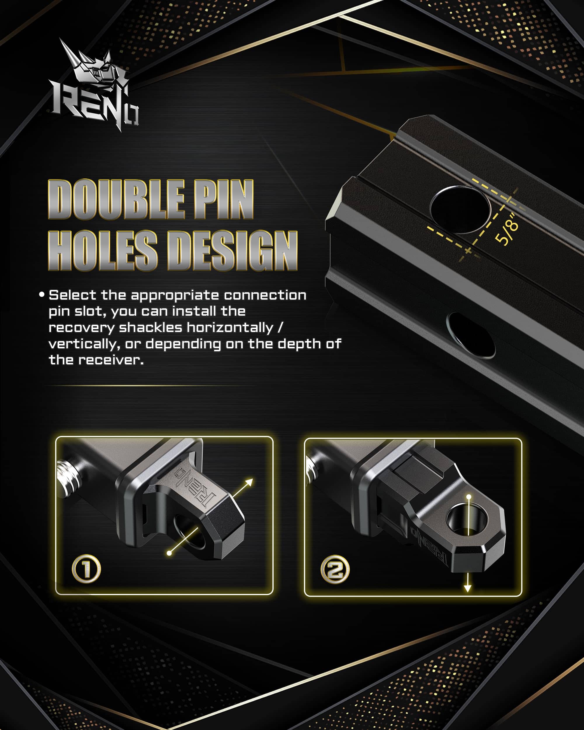 1. Material sólido RENO enganche de remolque y argolla de 3/4″ está construido en aluminio 7075 con tecnología de corte CNC. Superficie anodizada, nunca se oxida y es duradero. El pasador de bloqueo está hecho de acero inoxidable.