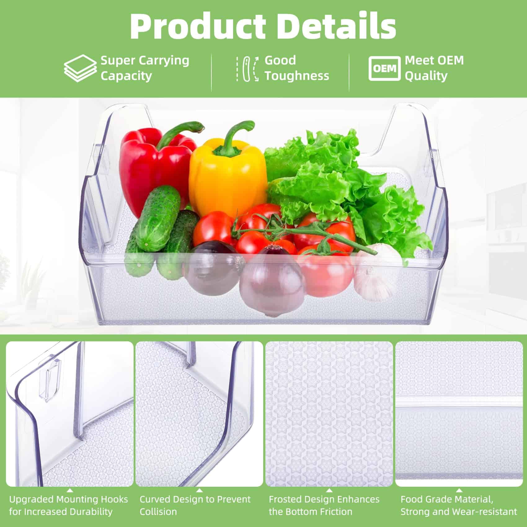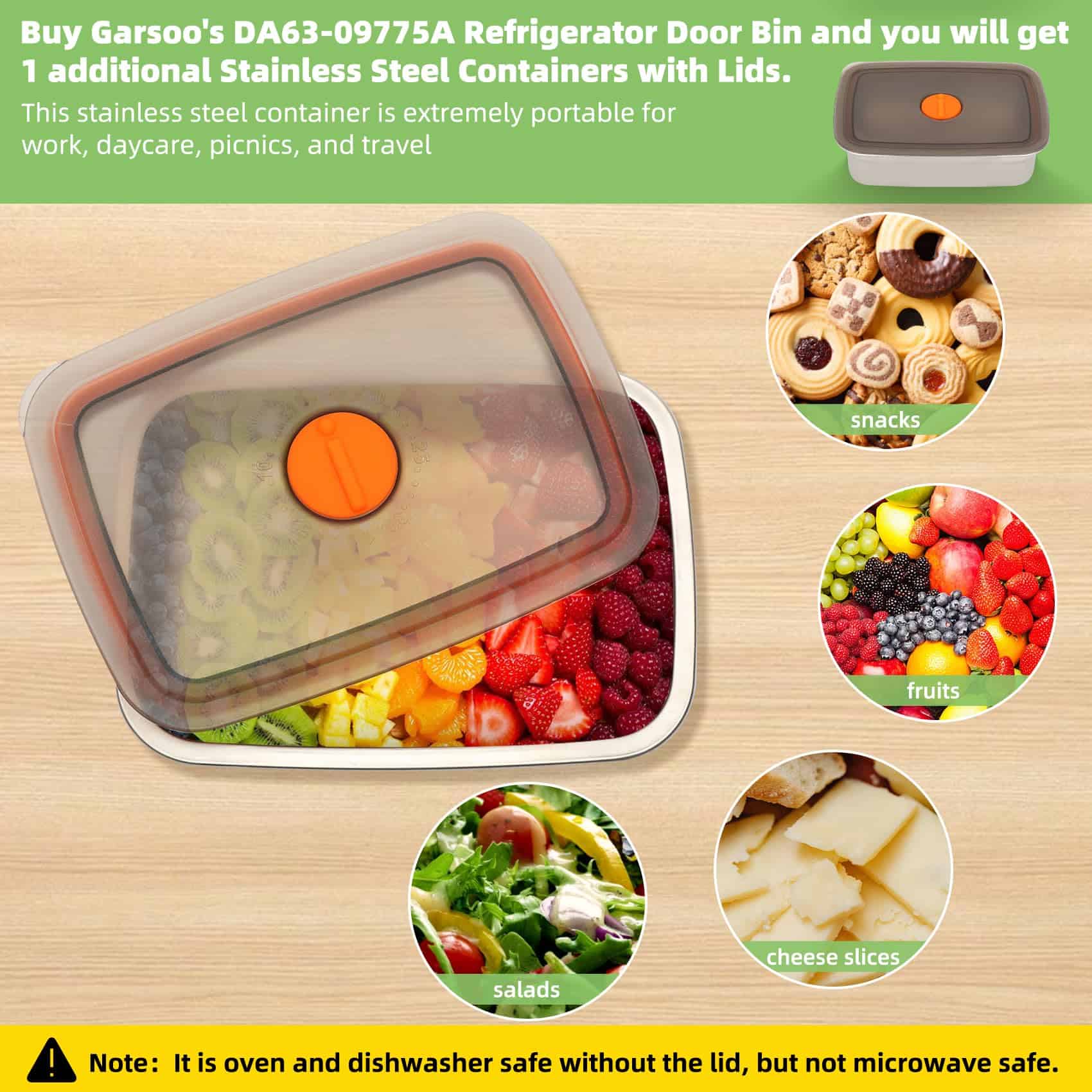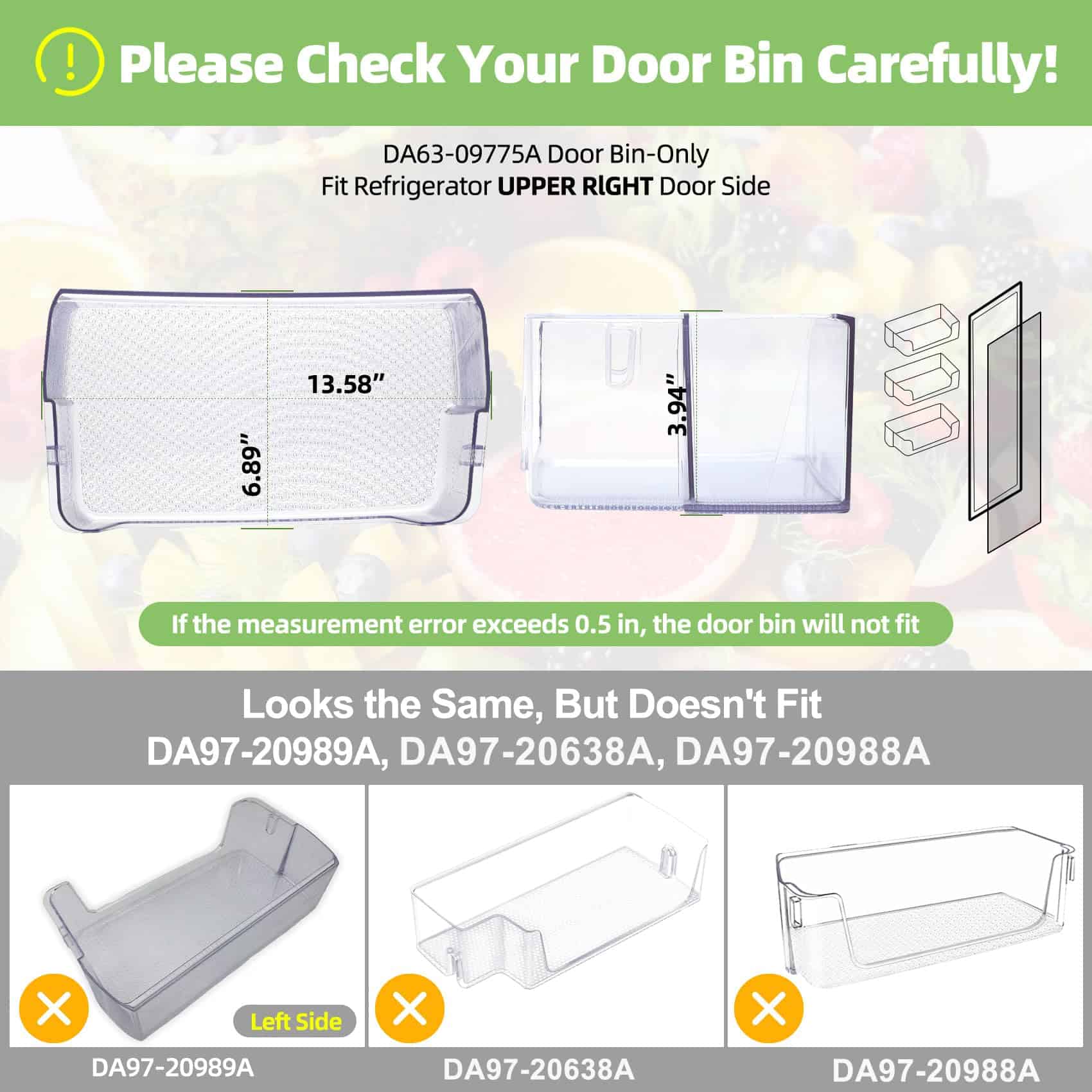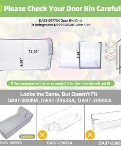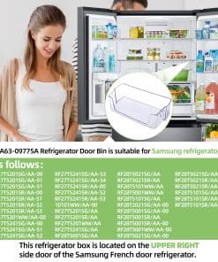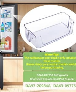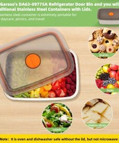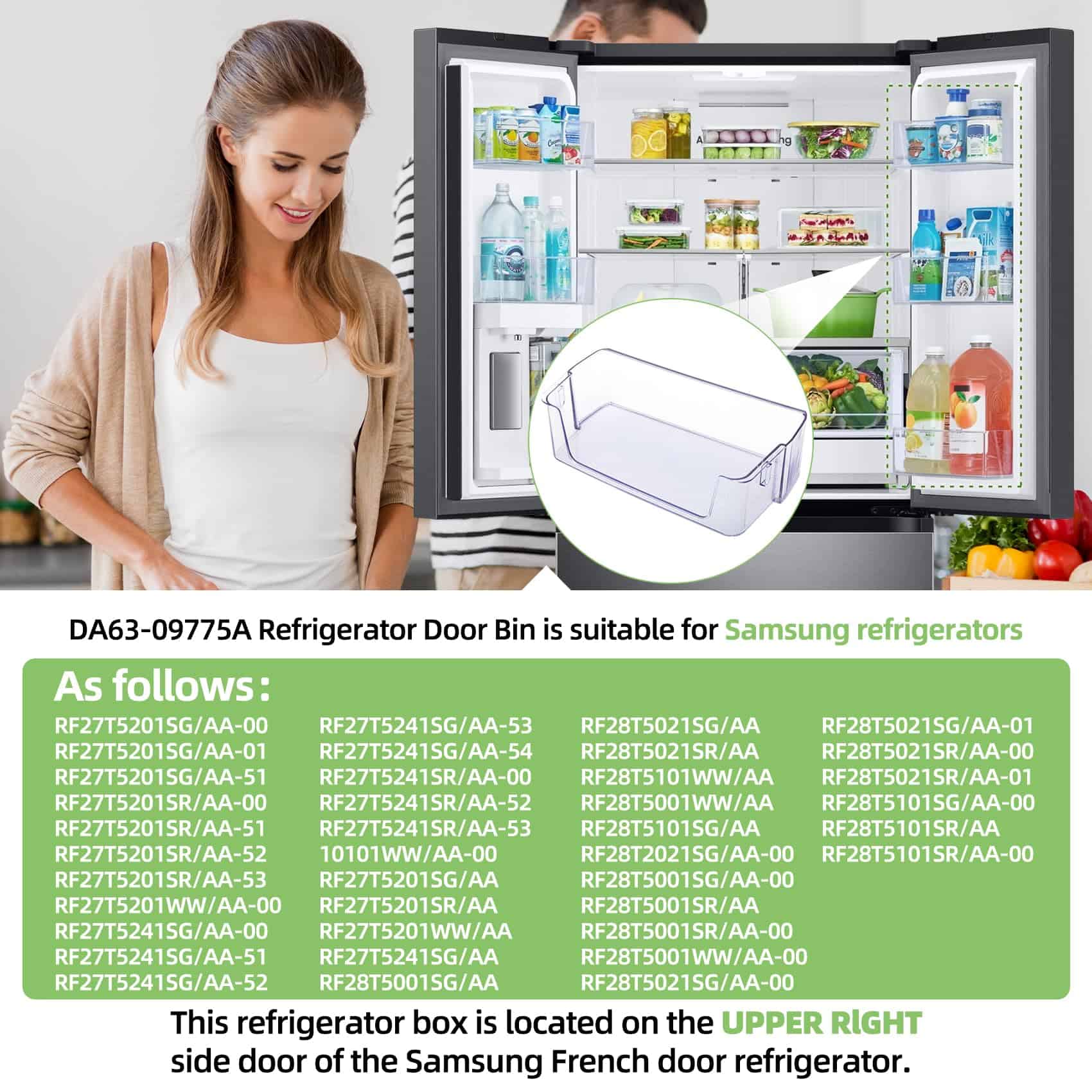 Repisa de Puerta de Refrigerador Actualizada DA63-09775A, DA97-20984A, un accesorio de alta calidad para tu refrigerador Samsung. Este repisa de puerta está hecho de materiales de alta calidad, resistentes y respetuosos con el medio ambiente. Compatible con varios modelos de refrigeradores Samsung, por favor revise la lista de modelos compatibles antes de comprar. Este repisa de puerta viene con 1 contenedor adicional de acero inoxidable para almacenar alimentos. Excelente servicio post-venta, con garantía de calidad y satisfacción del cliente garantizada. Para modelos de puerta derecha solamente.